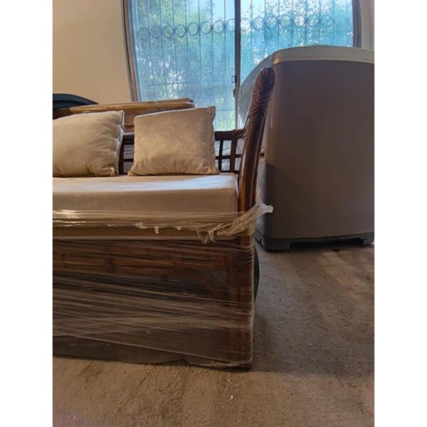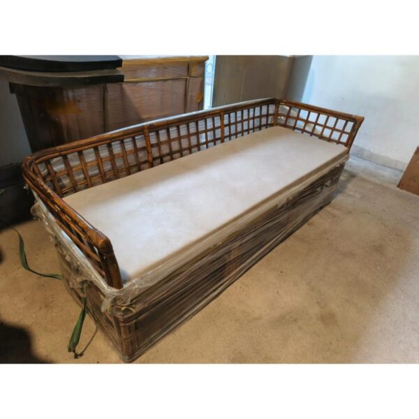 Material Cane wood frame with silk fabric upholstery Condition Gently used; excellent structural condition with minimal cosmetic wear. Dimensions (in inches) Length: 71 in