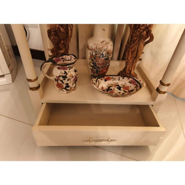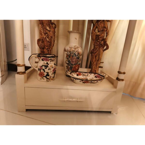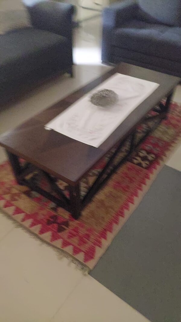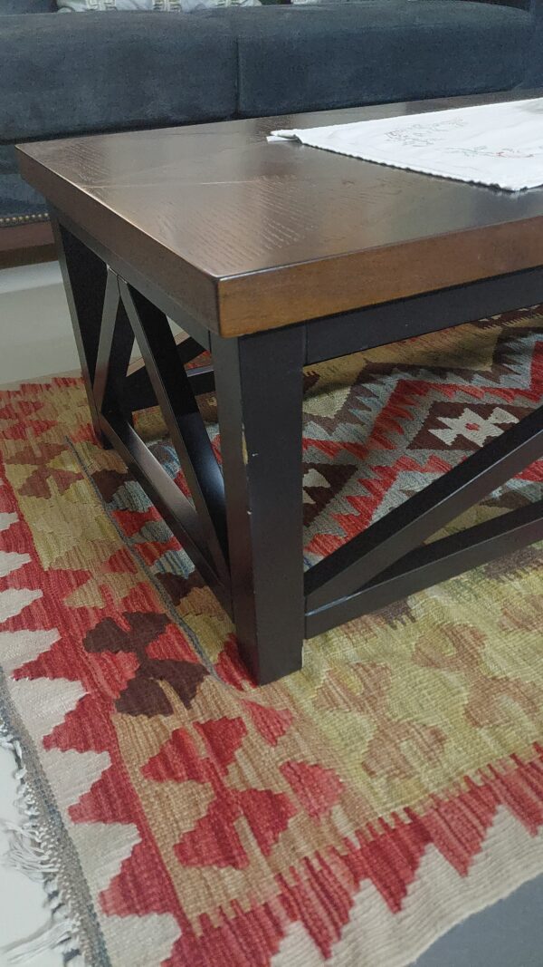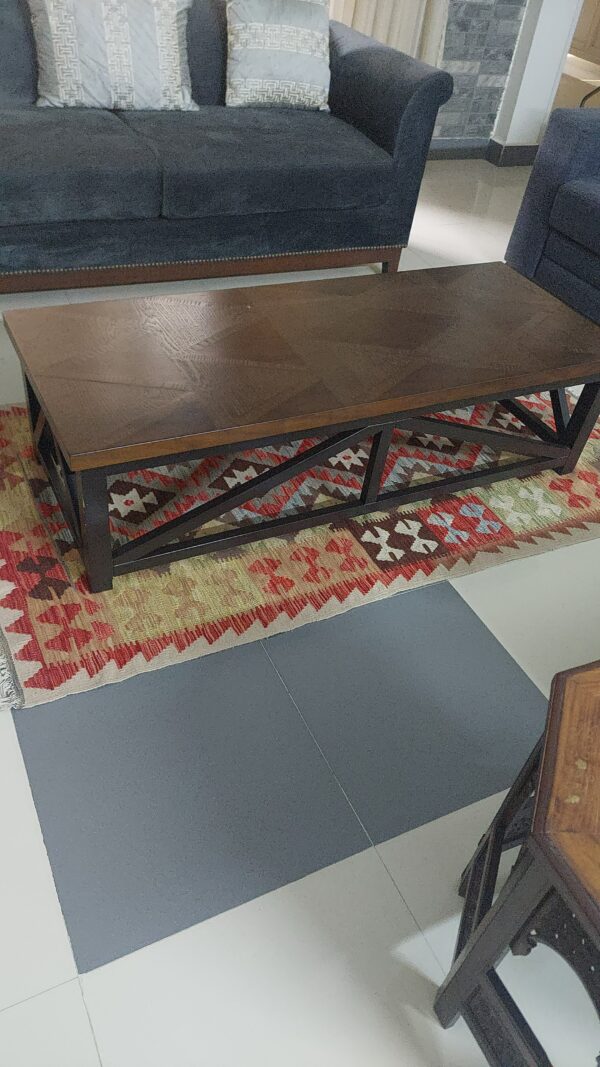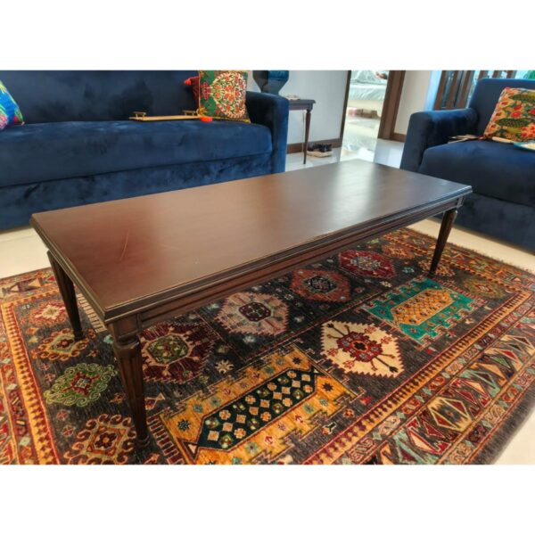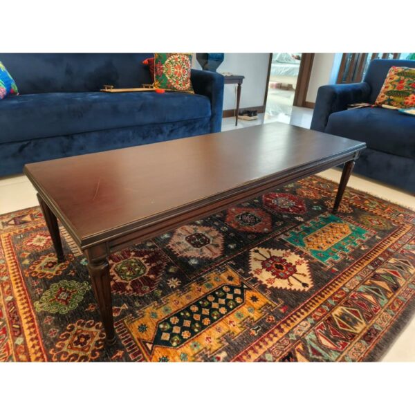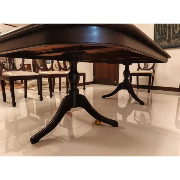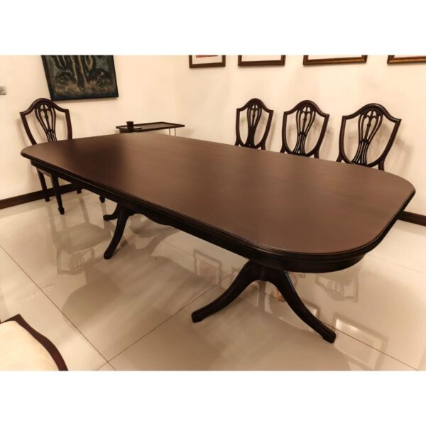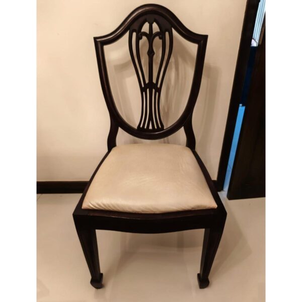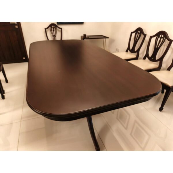Material Dining top ply wood, base sheesham wood & chair leatherette Condition Light hand polish required Dimensions (in inches) Length: Table Length: 95" Chair Length: 19"