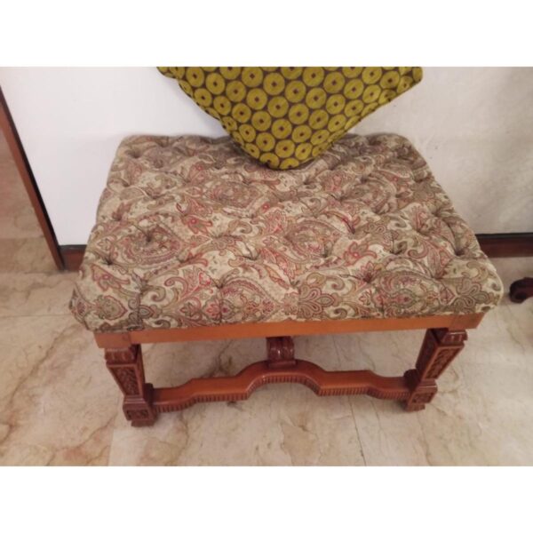 Material Solid carved wood base with upholstered cushion in floral paisley fabric Condition Gently used, well-maintained vintage condition with minor signs of age-appropriate wear Dimensions (in inches) Length: 30″