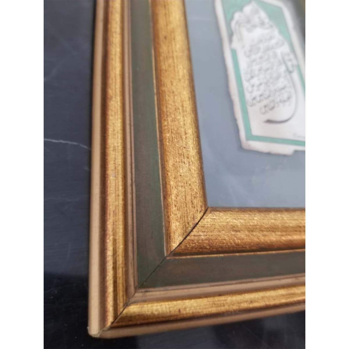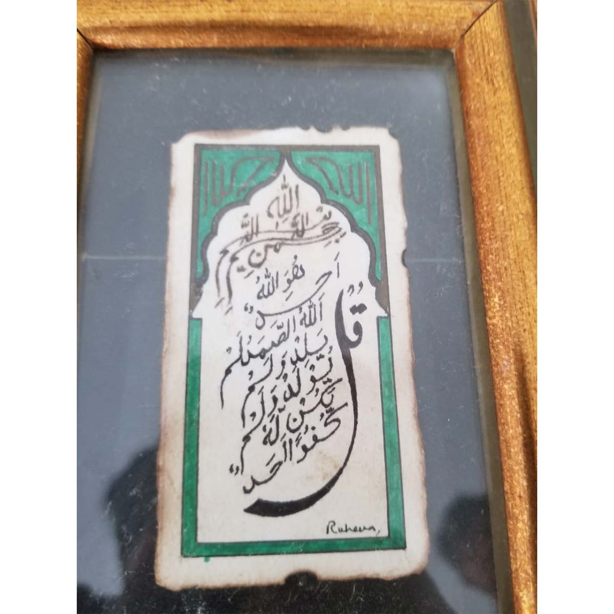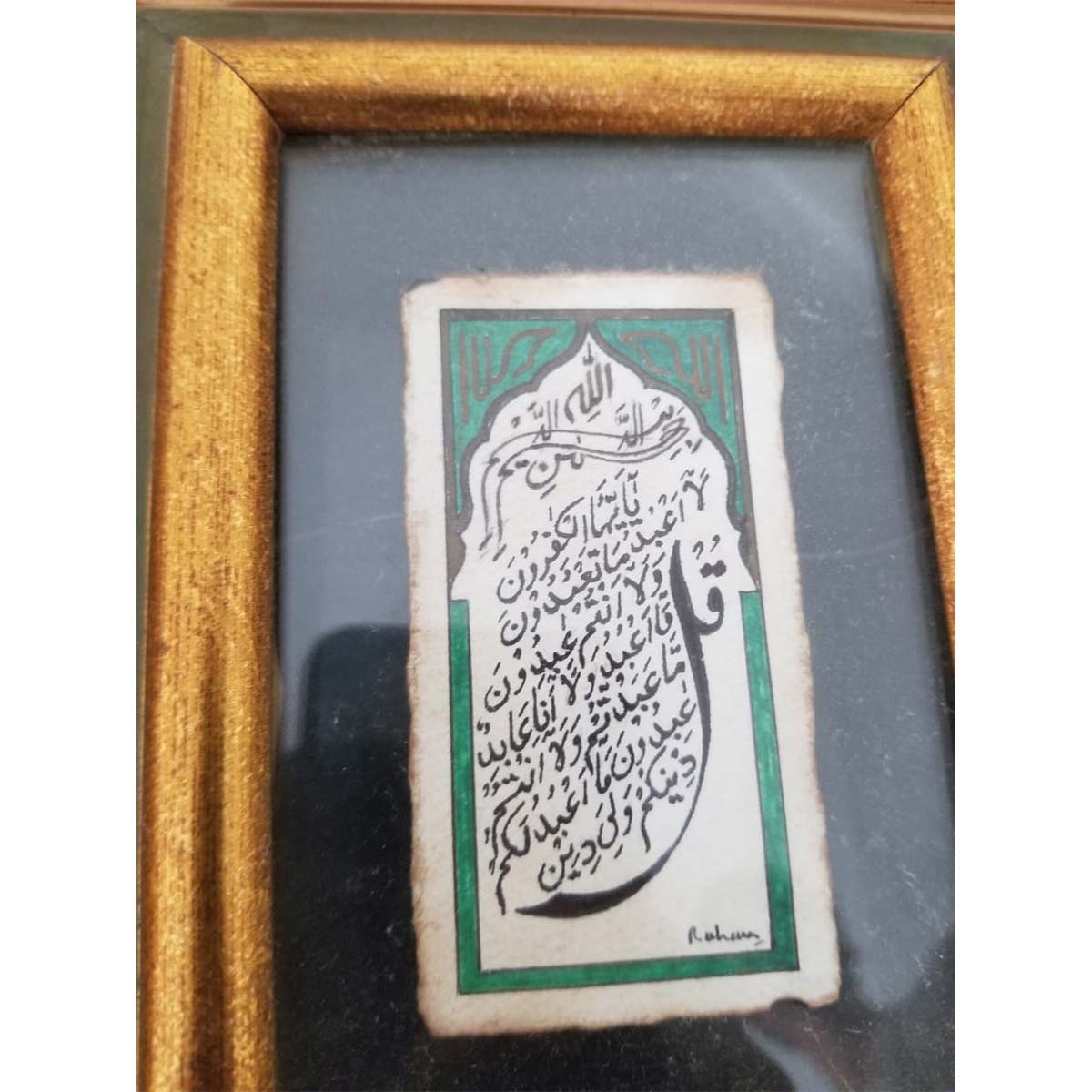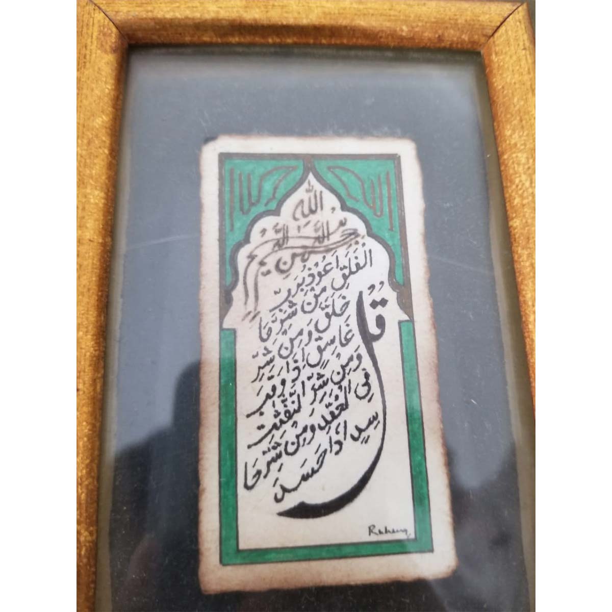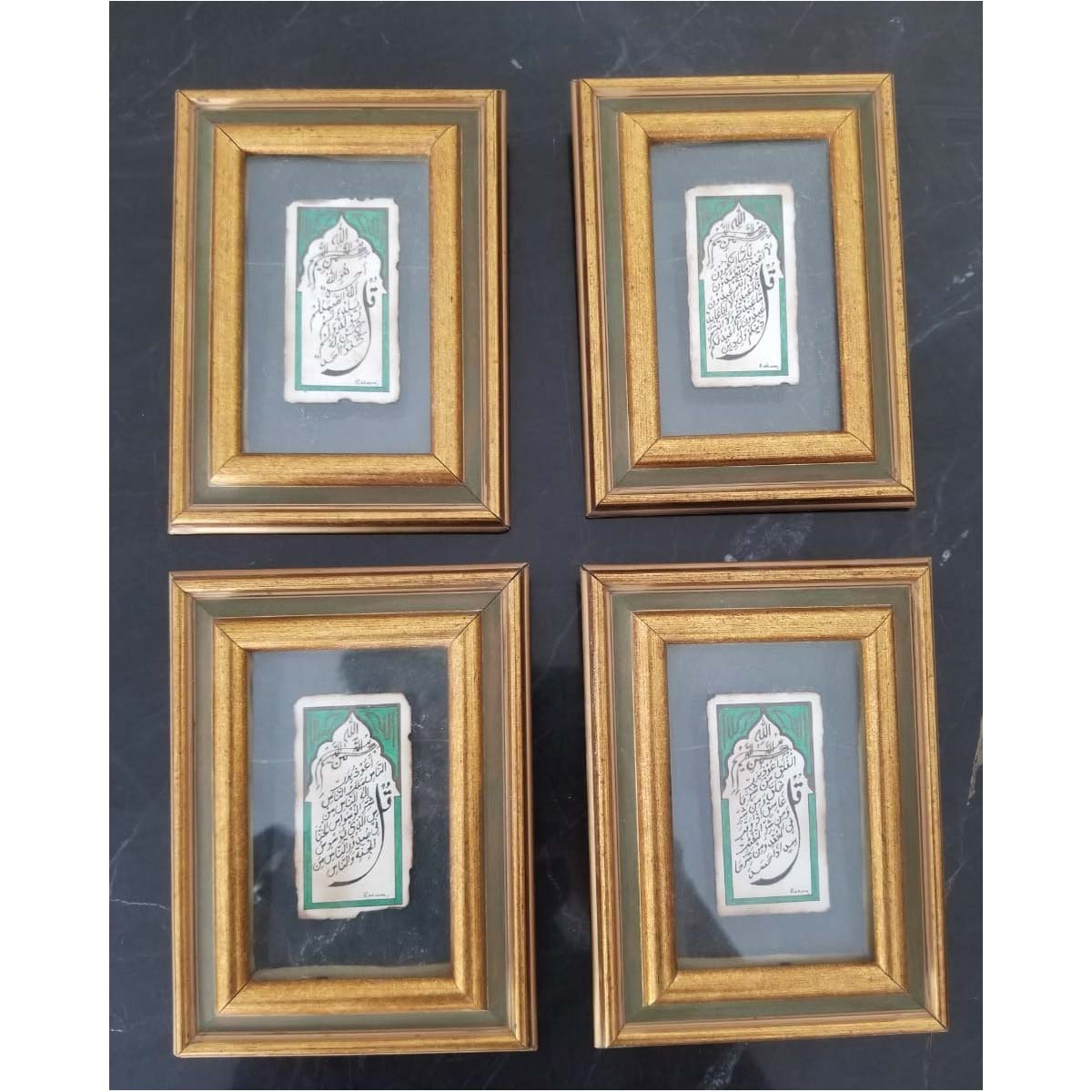 Set of 4 Quls calligraphy paintings on a vintage paper pressed in a glass frame by artist Raheem.