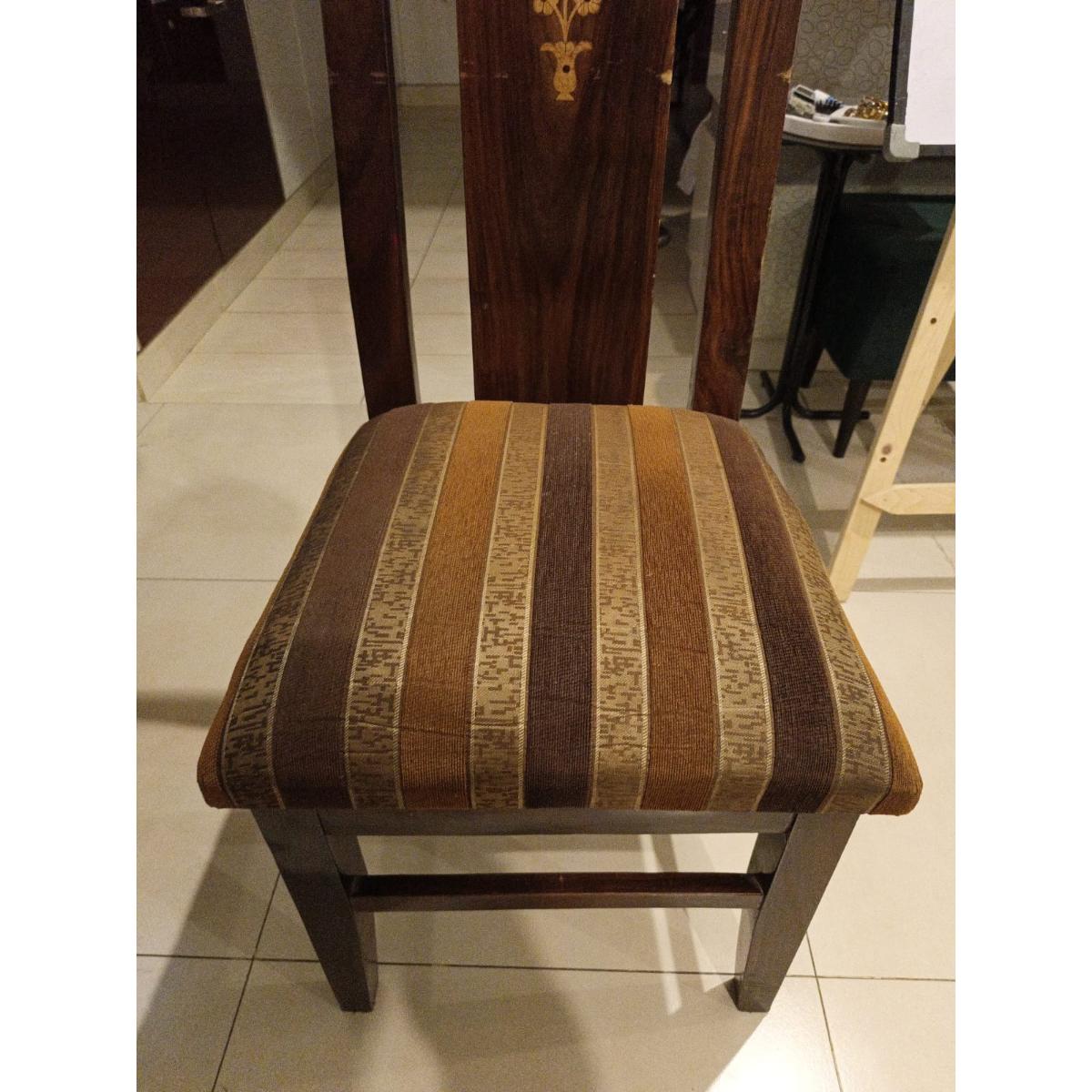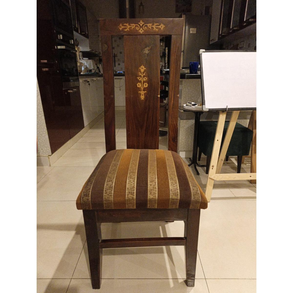 | Material | Table & Chair Frame: Sheesham wood Upholstery: Cotton fabric Table Top: Glass |