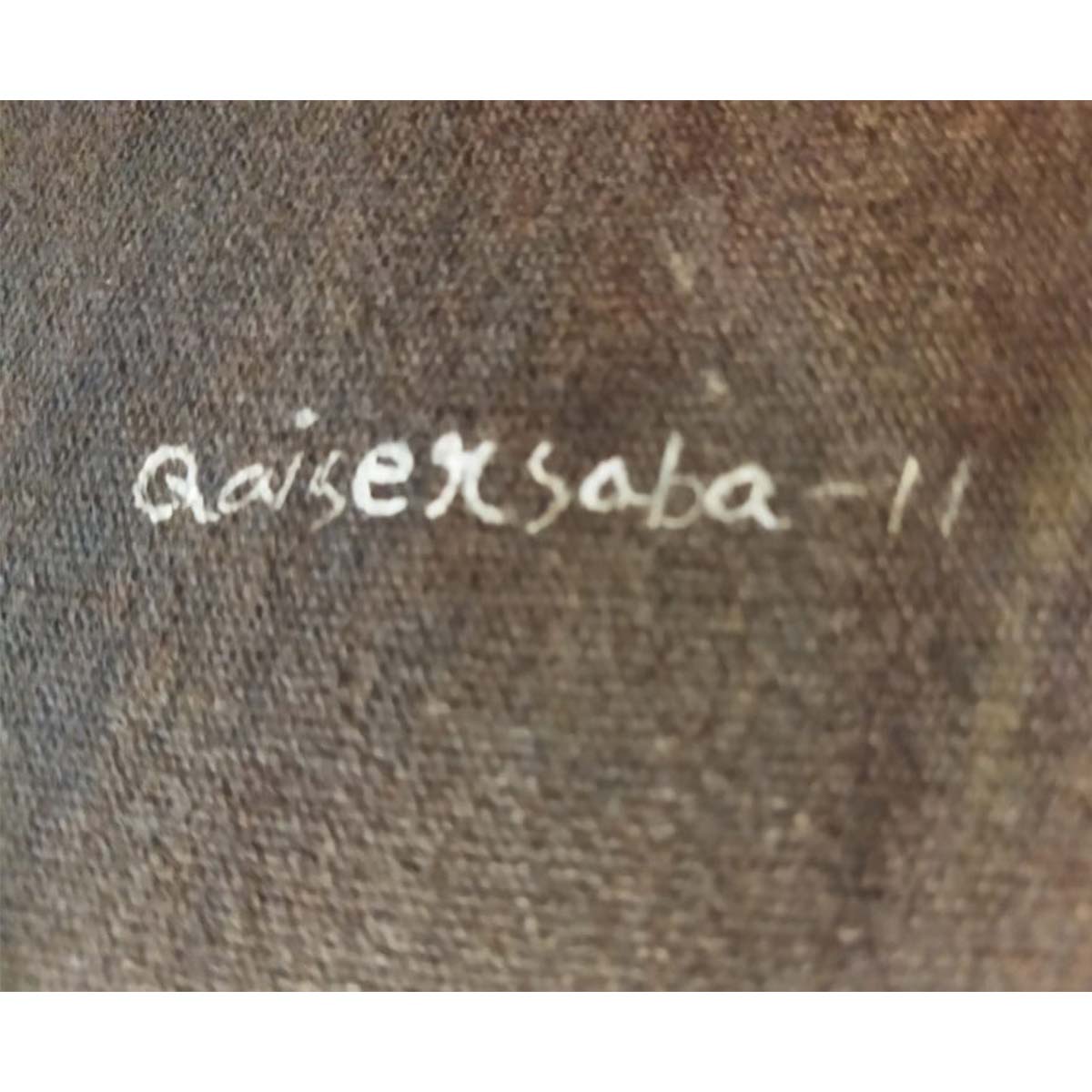 An abstract painting on canvas depicting faces and figures by artist Qaiser Saba, signed and dated 2011.