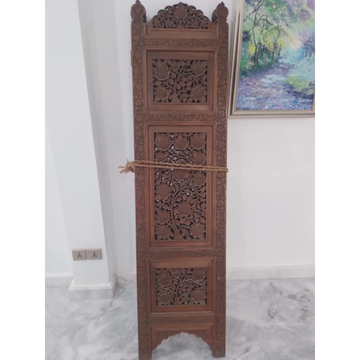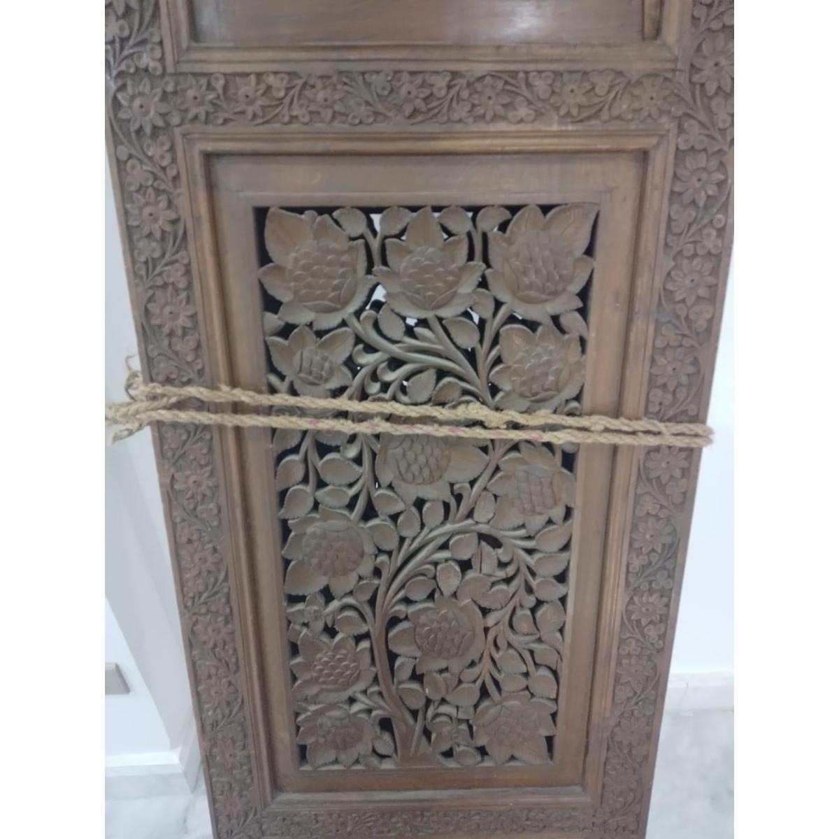 Elegant handcrafted wooden screen by Alishan Furniture, featuring intricate floral carvings. Perfect as a room divider, décor piece, or traditional accent for home and office interiors.