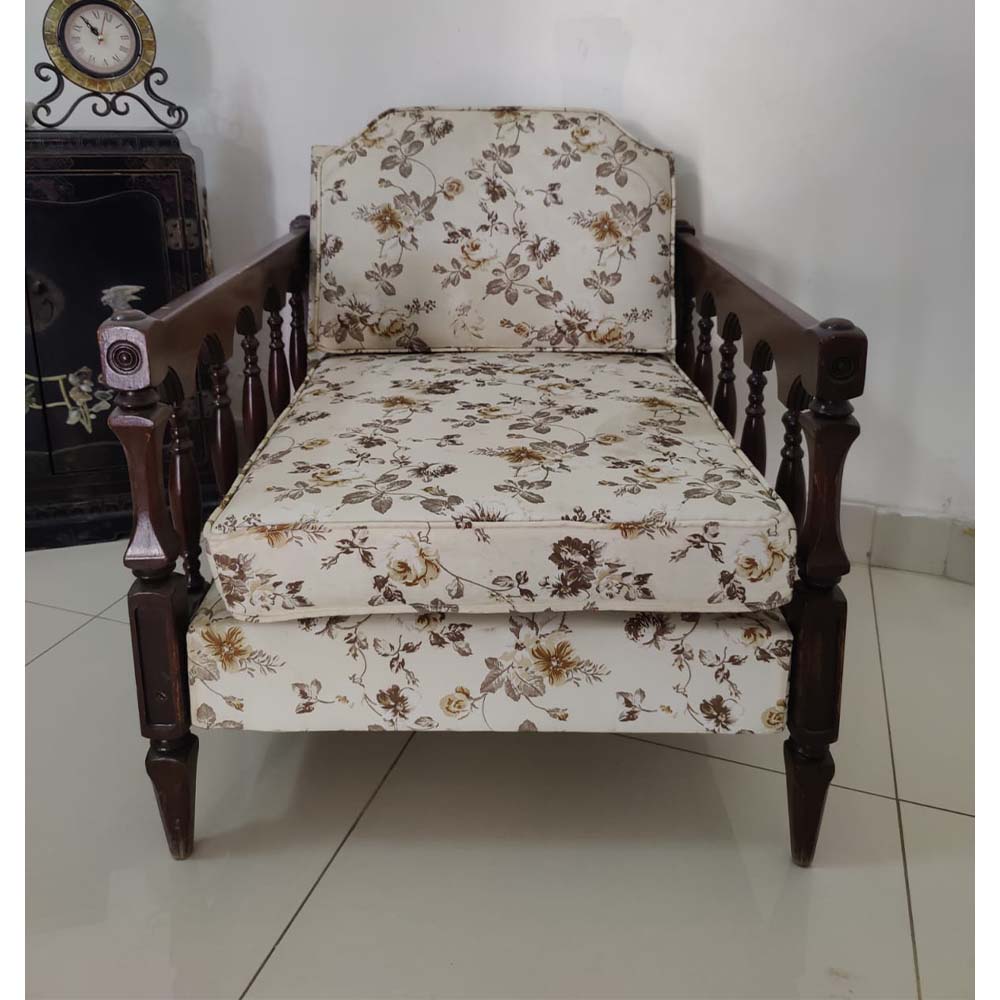 American arm chair in Rosewood upholstered in a floral fabric, perfect piece for a study, lounge bedroom or even outdoors.