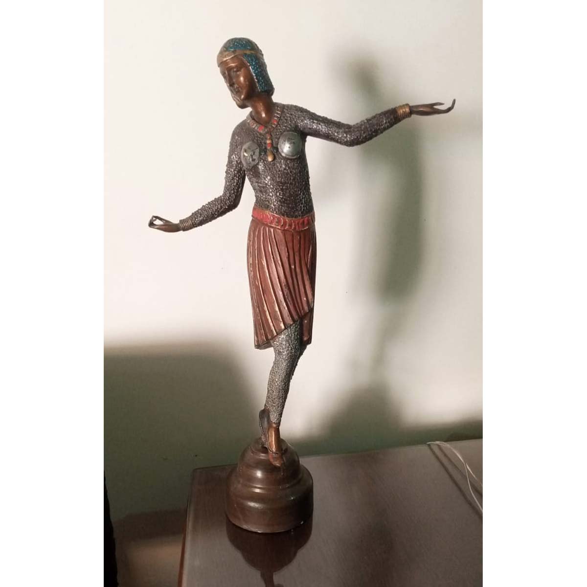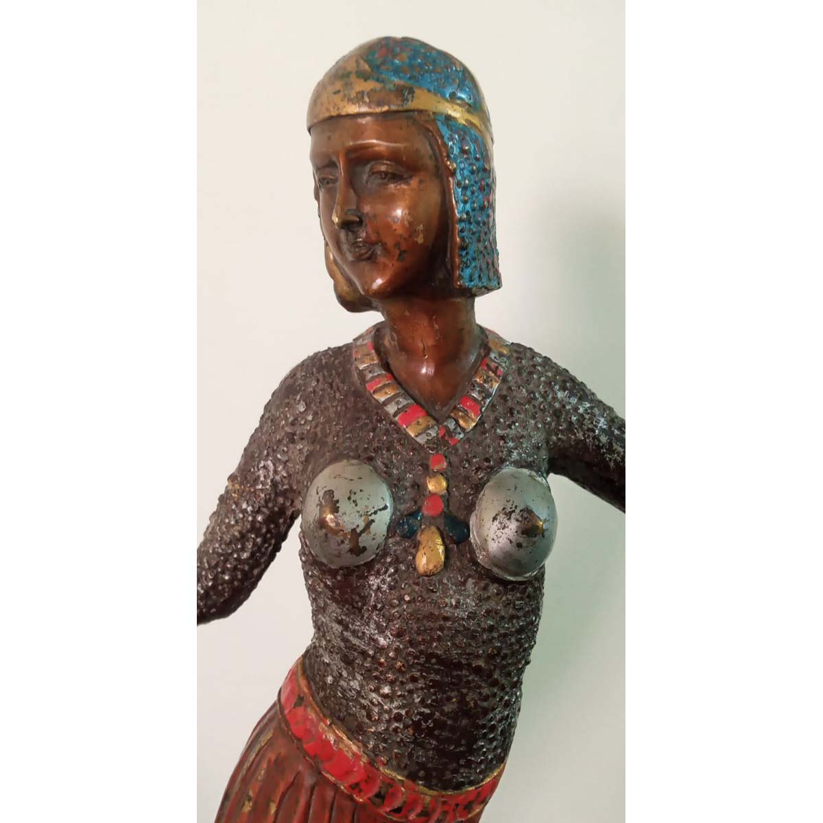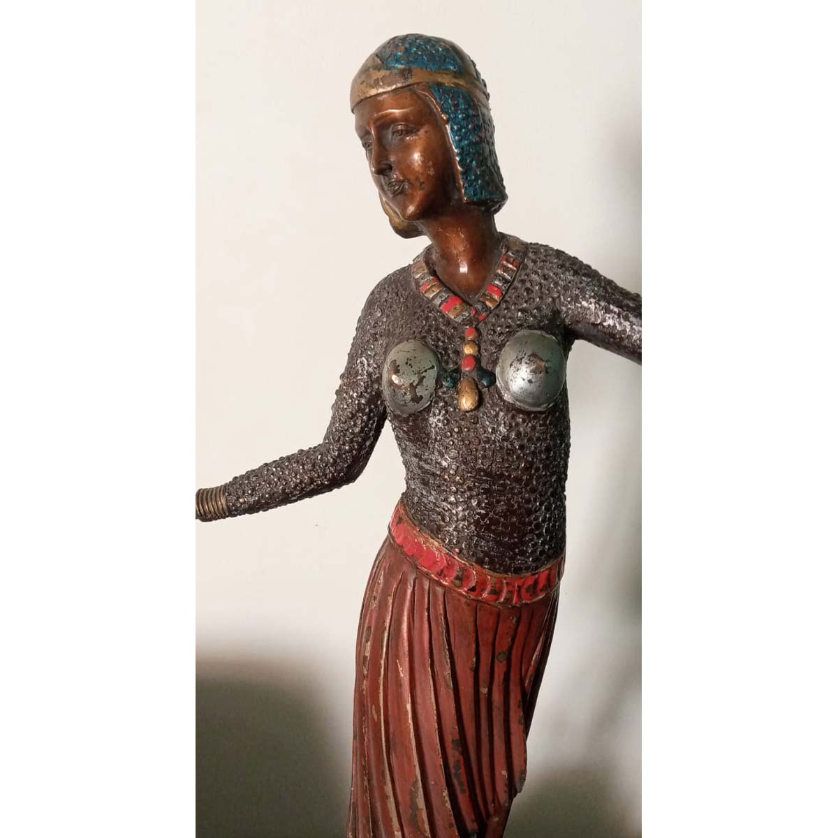 Antique Egyptian sculpture of a figure made of solid brass and hand painted. Weighs approximately 3.5kg.