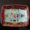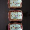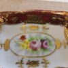 Set of 3 antique porcelain small platters with heavy gold embossing. Deep burgundy with hand painted floral design. A collectors item!