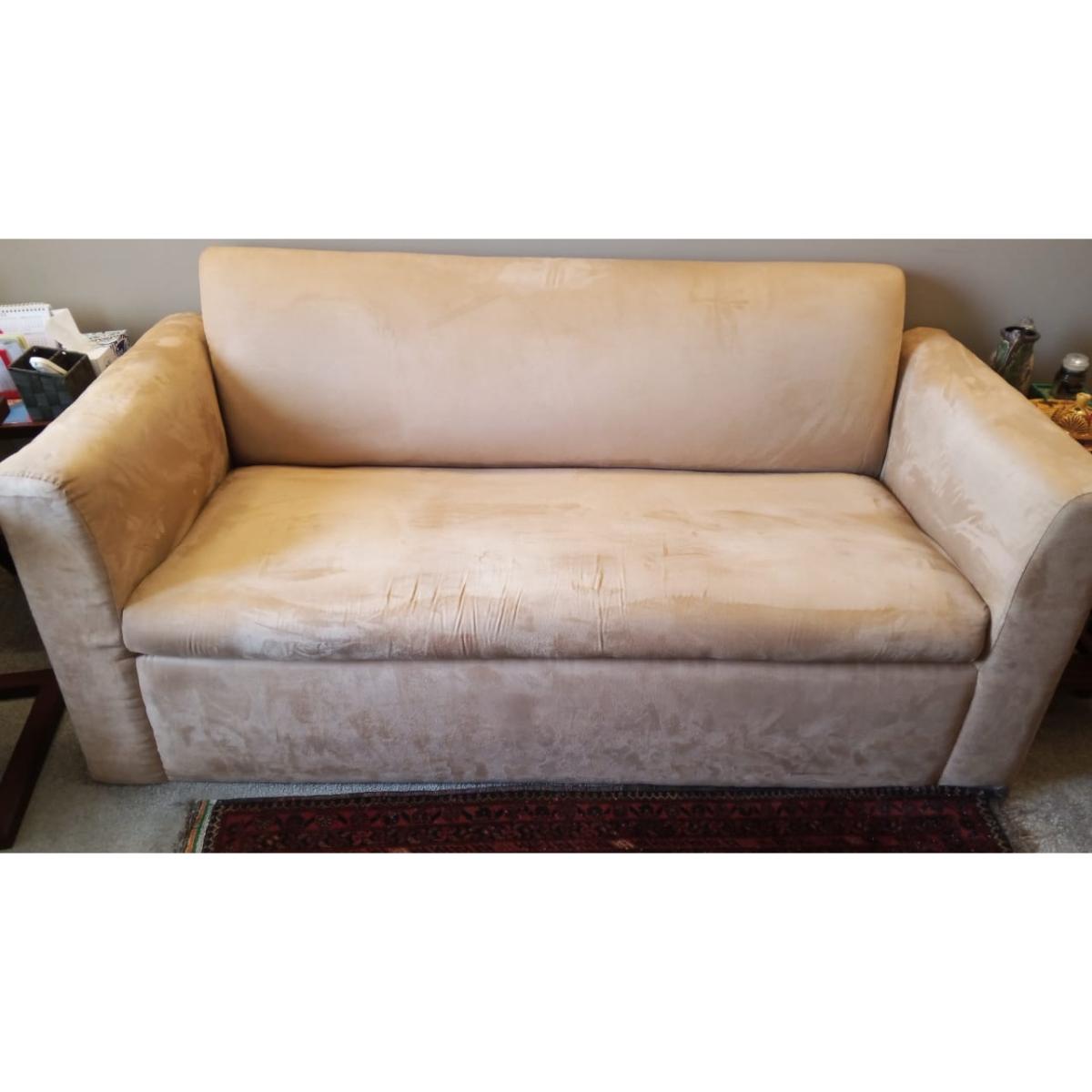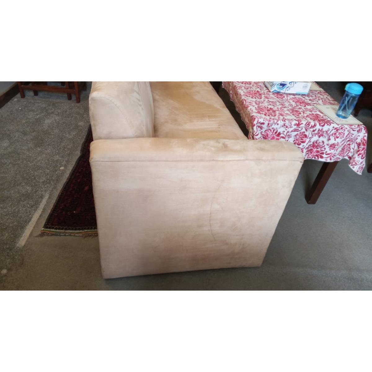 A comfortable and well-maintained 3-seat beige sofa with plush upholstery in a clean, modern silhouette. The sofa features durable springs with excellent cushioning support, no stains, and no repairs needed. Perfect for living rooms, guest areas, or office lounges.