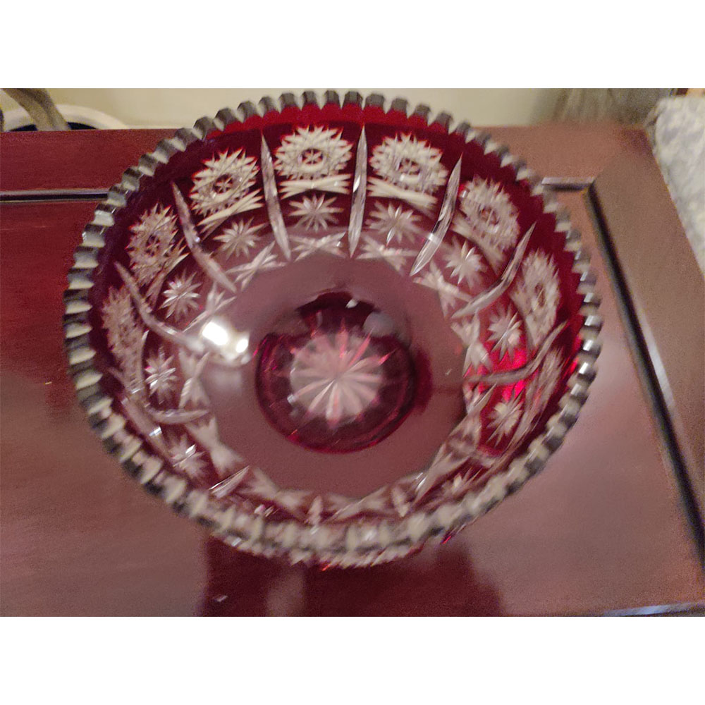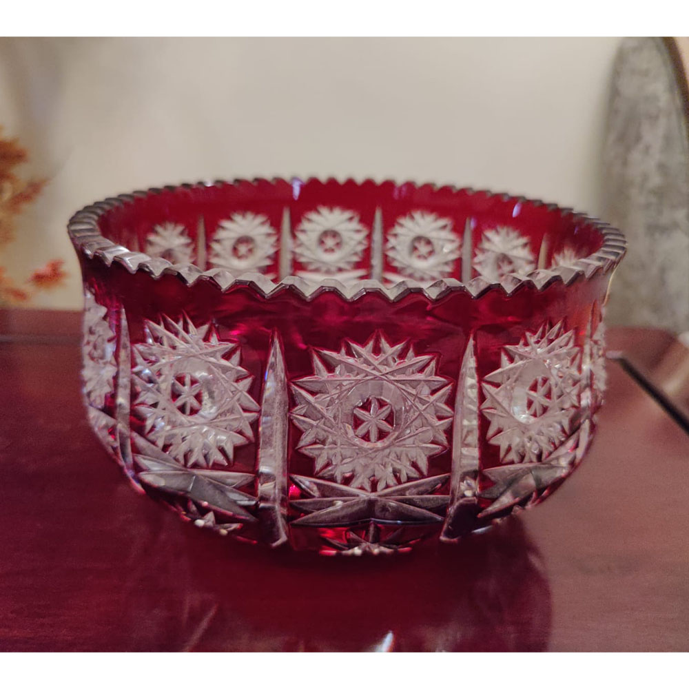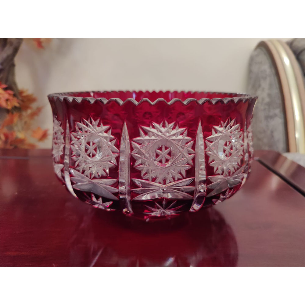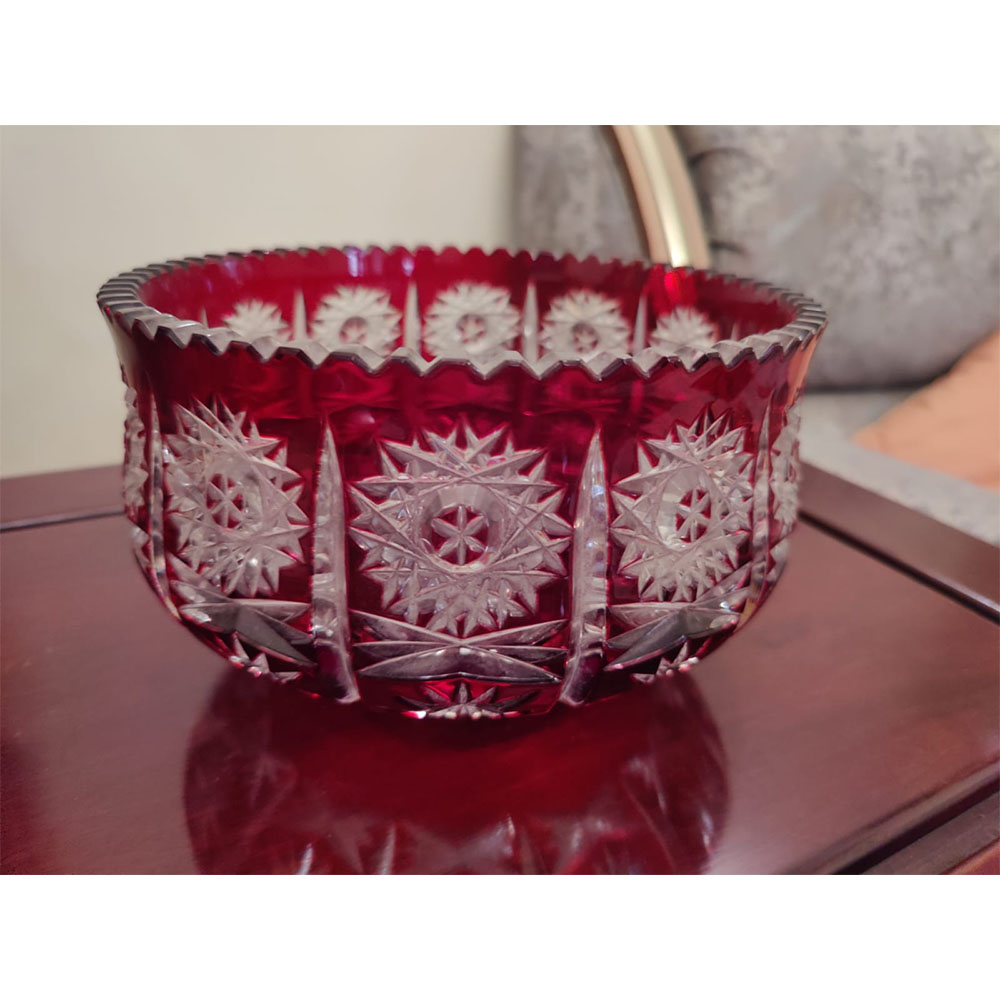 Bohemian cut crystal bowl in ruby red overlay. A beautiful piece for decoration.