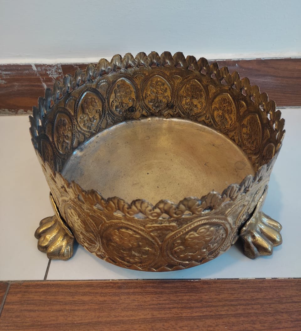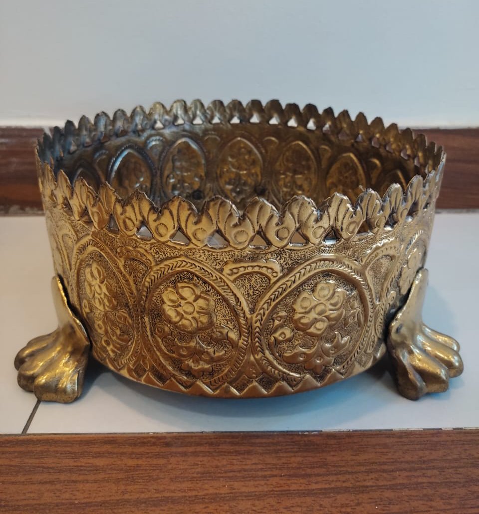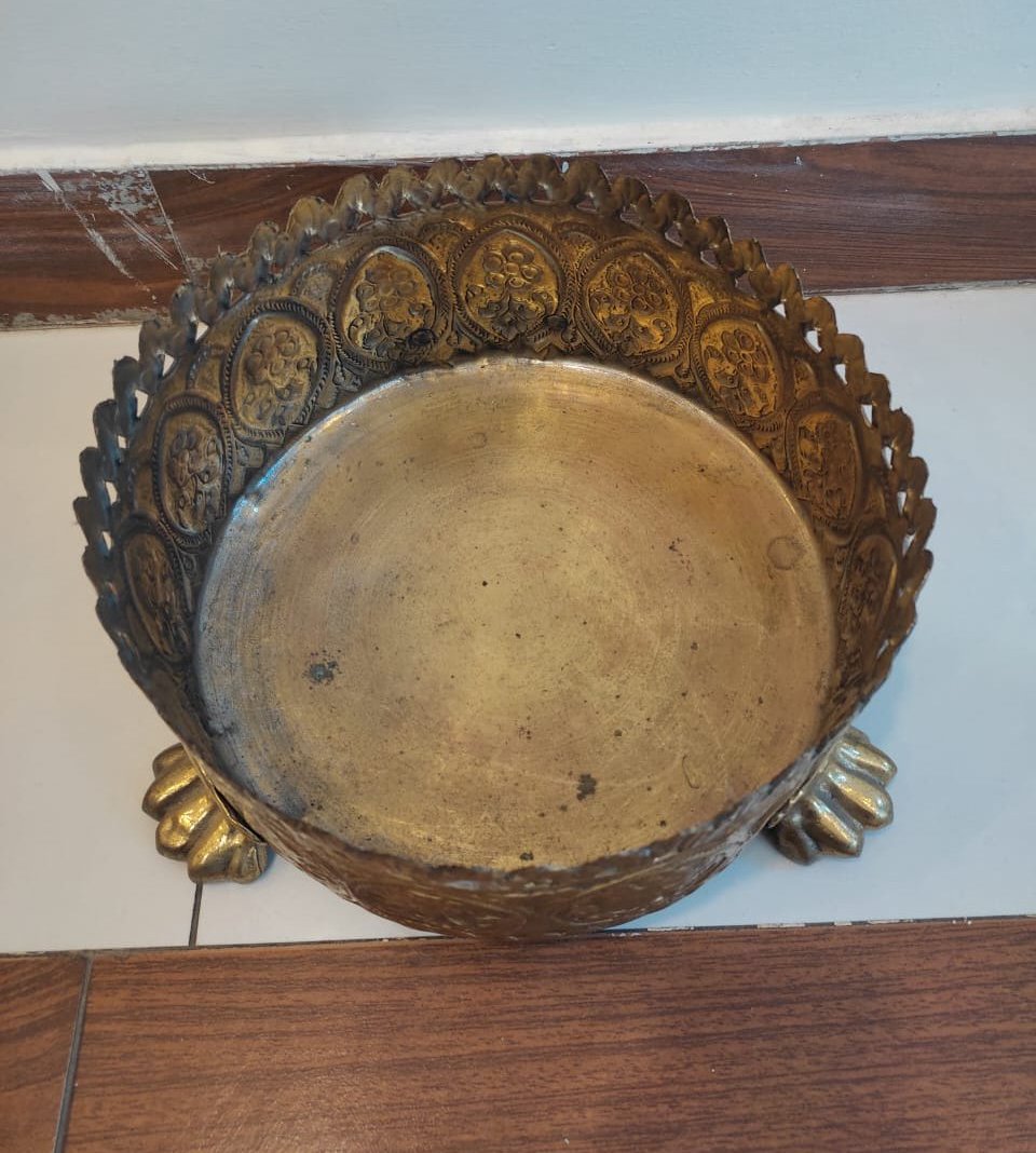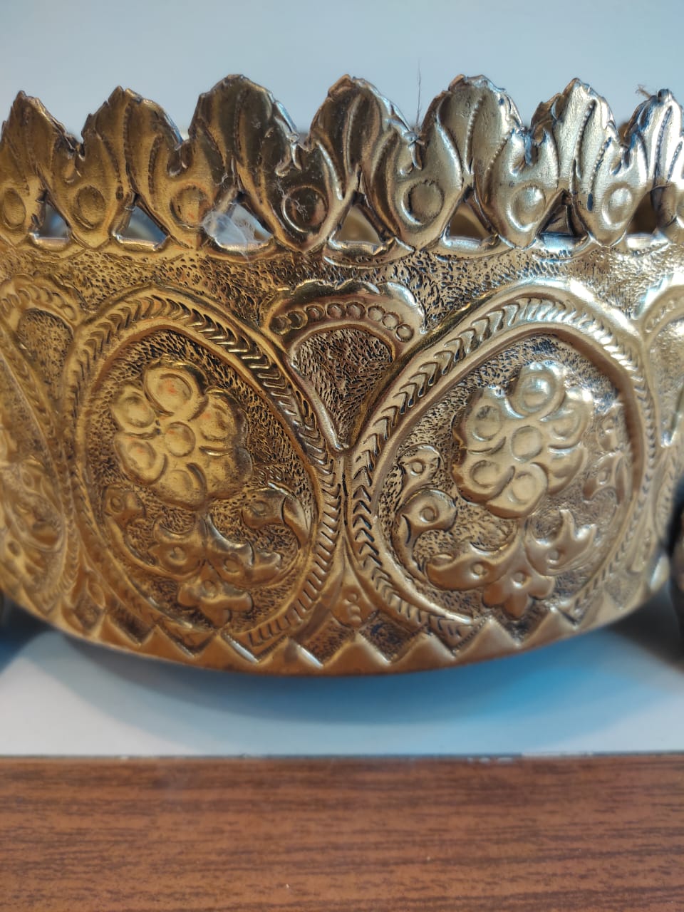 This exquisite brass bowl with footed base is a testament to timeless elegance and masterful craftsmanship. The intricate hand-etched patterns and designs create a luxurious and sophisticated look.