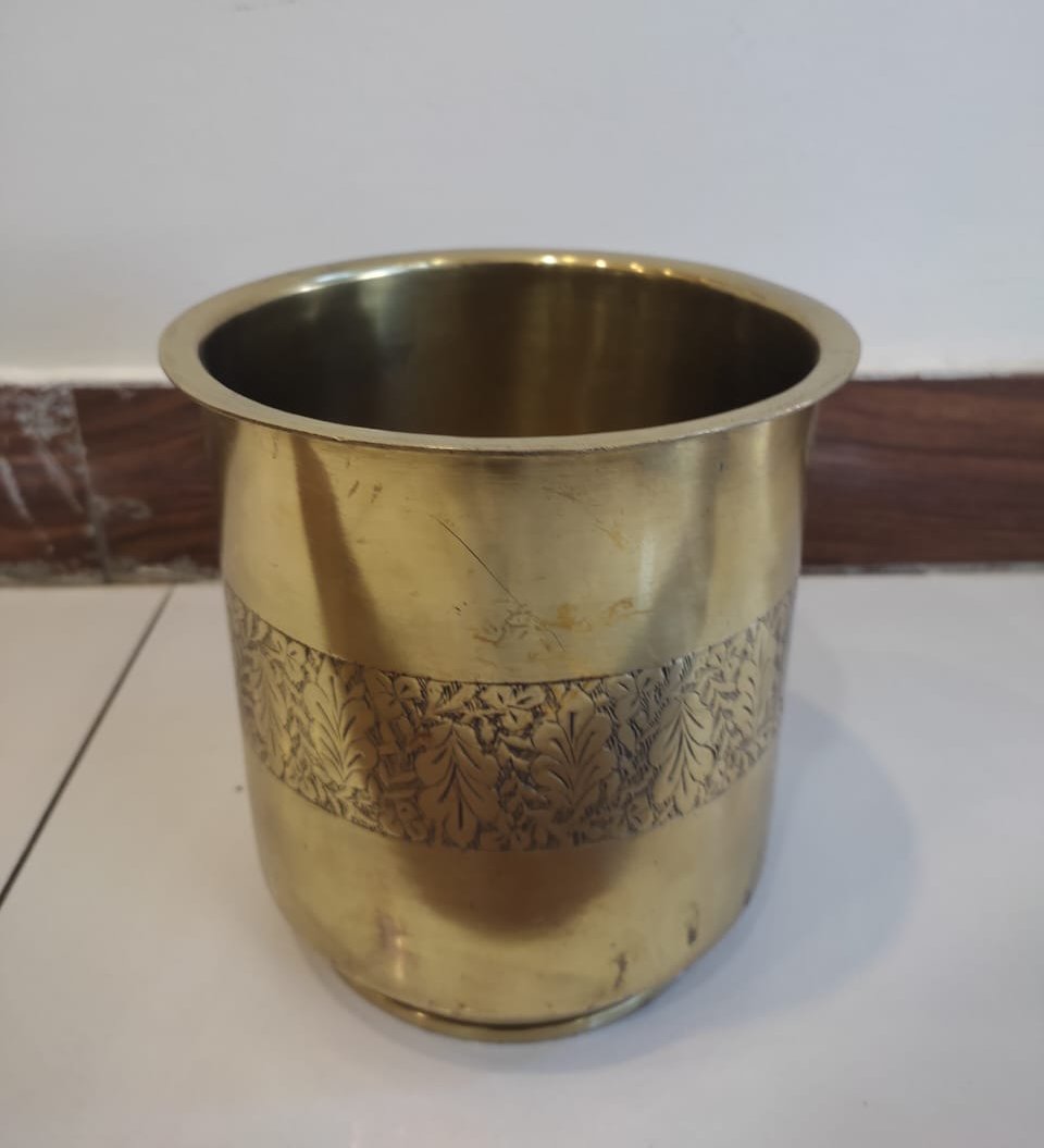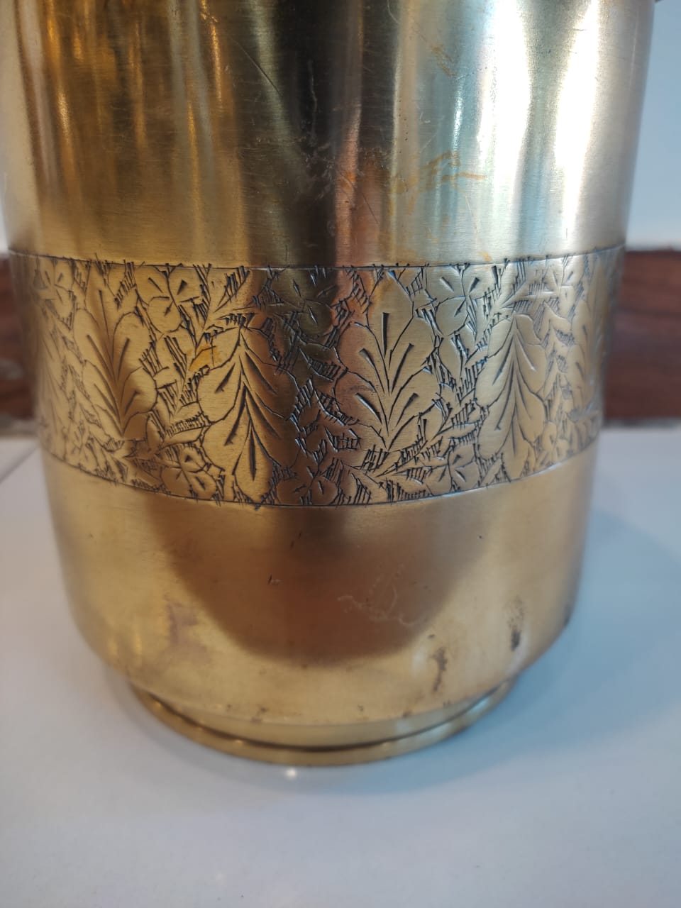 Vintage brass ice bucket combines style and functionality. The eye-catching hand-etched floral motif will add a touch of class to your dinner party setting.