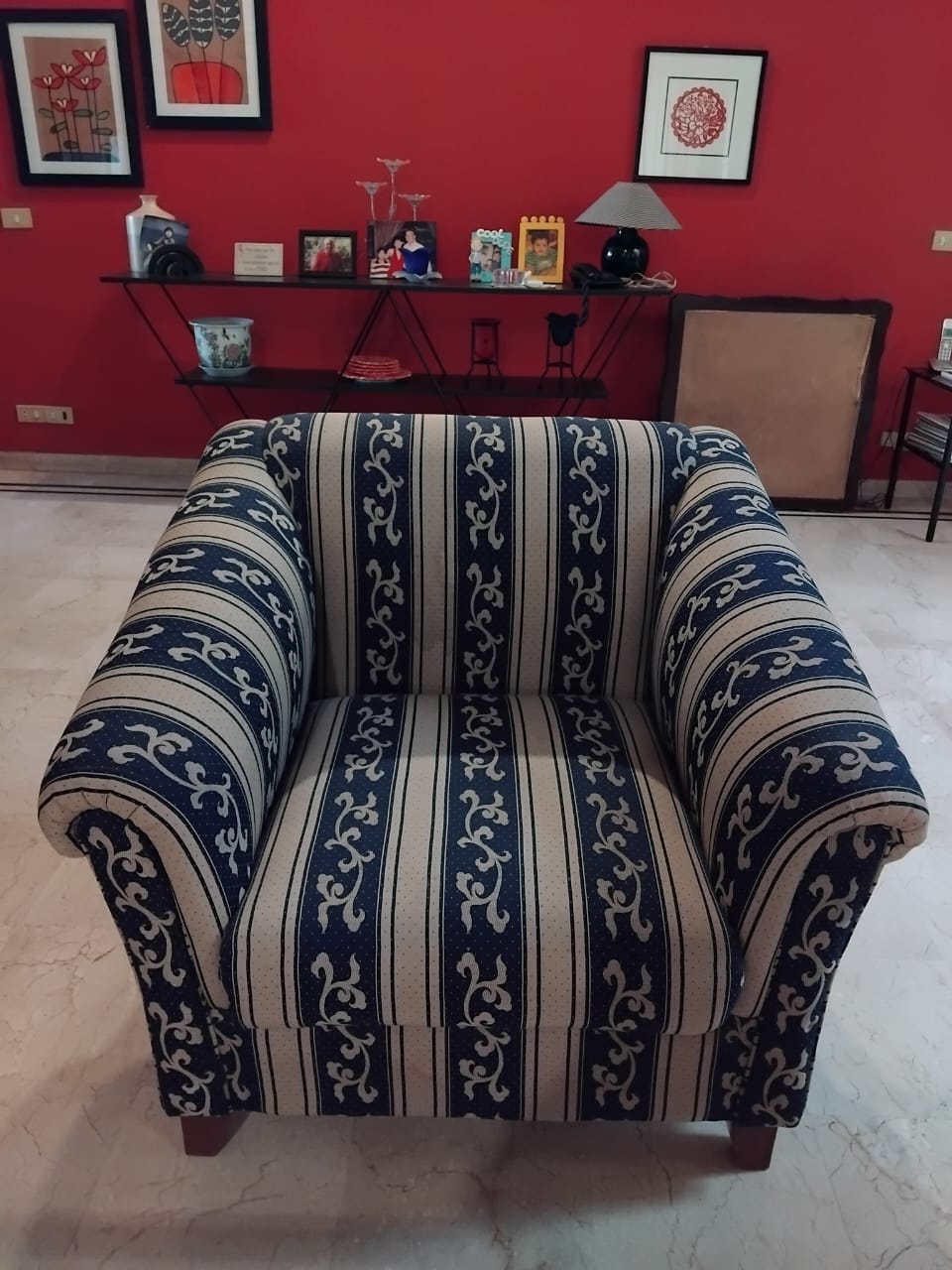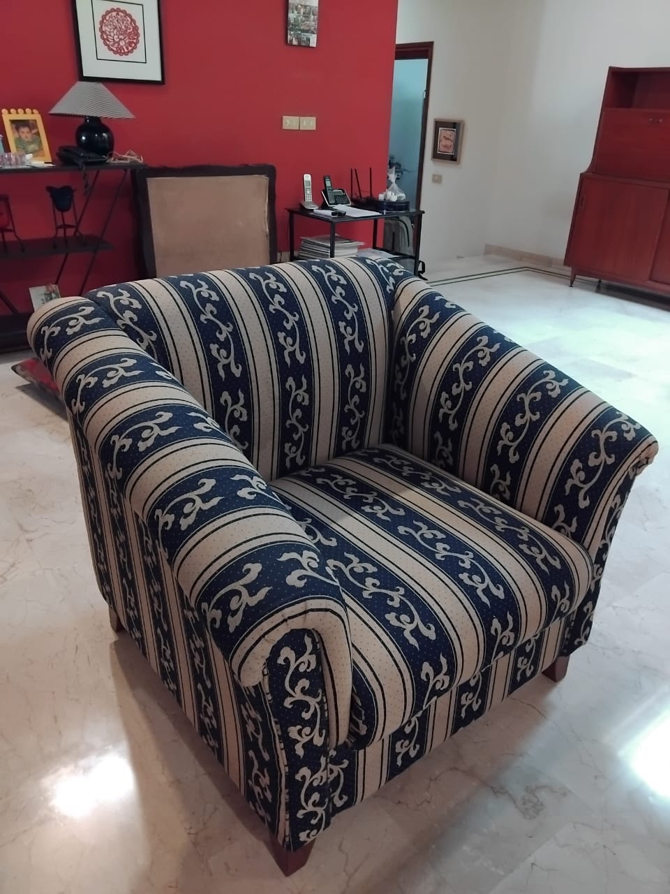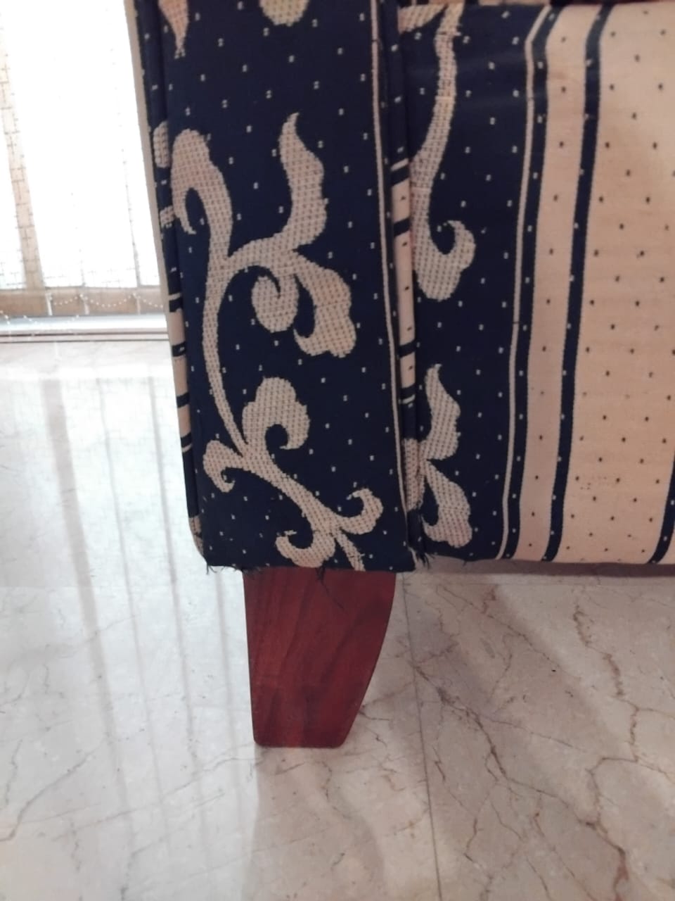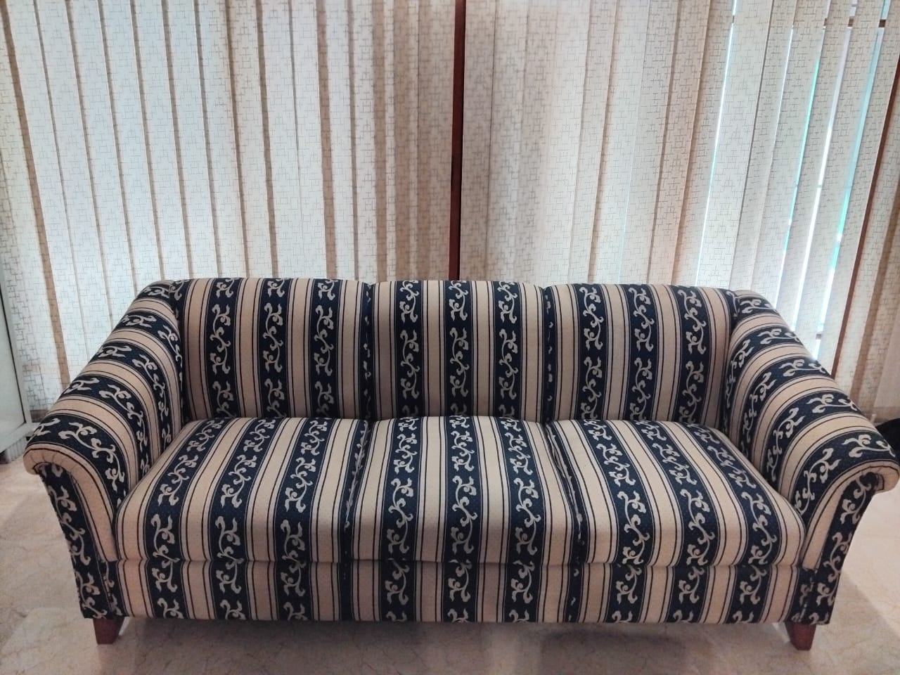 This 4-seater sofa set, comprised of one large 3 seat sofa and a single one seat sofa chair, is ready to enhance your living space. Crafted with a comfortable cotton fabric and supported by solid wooden legs, this set is designed for everyday use.