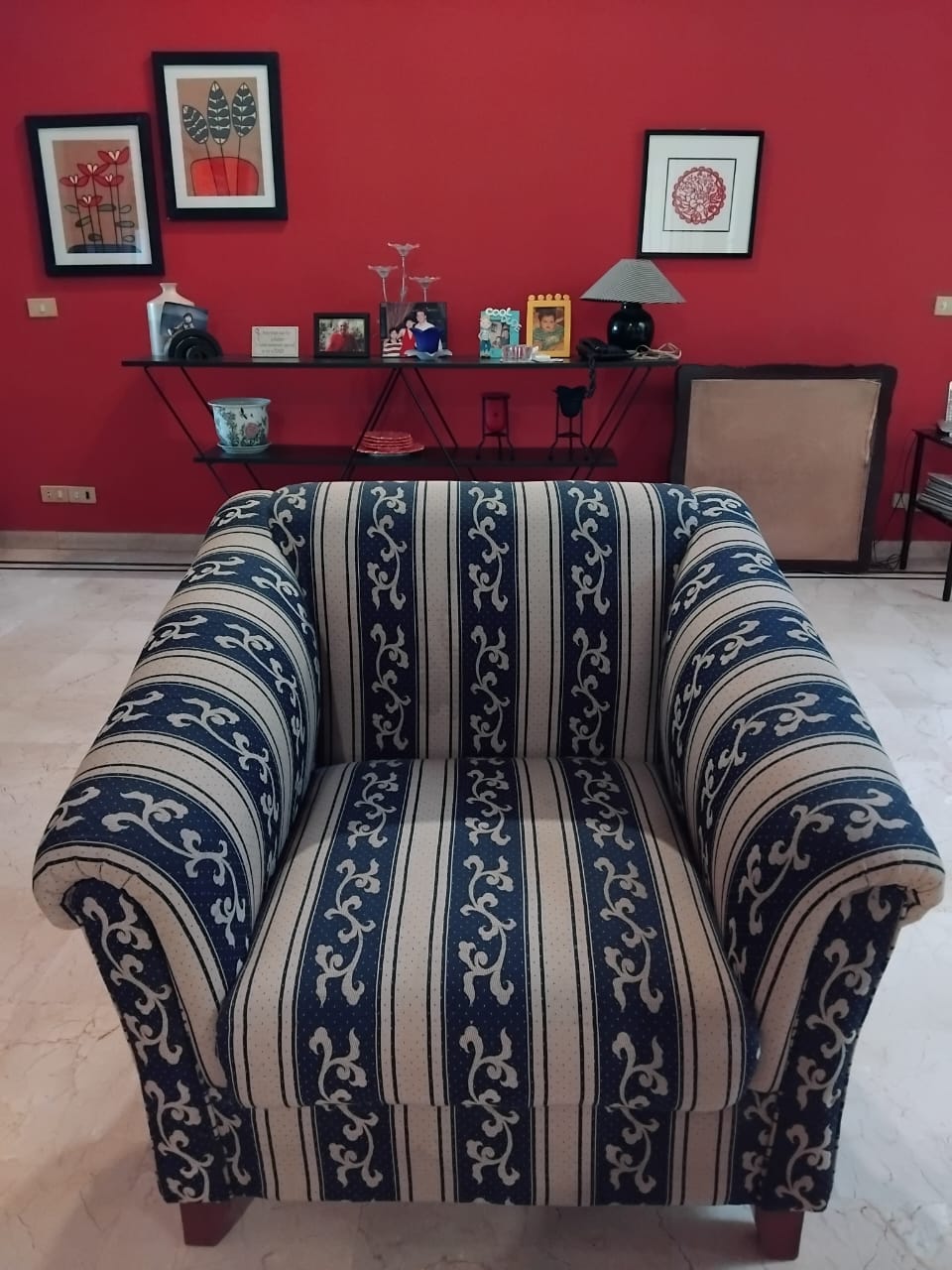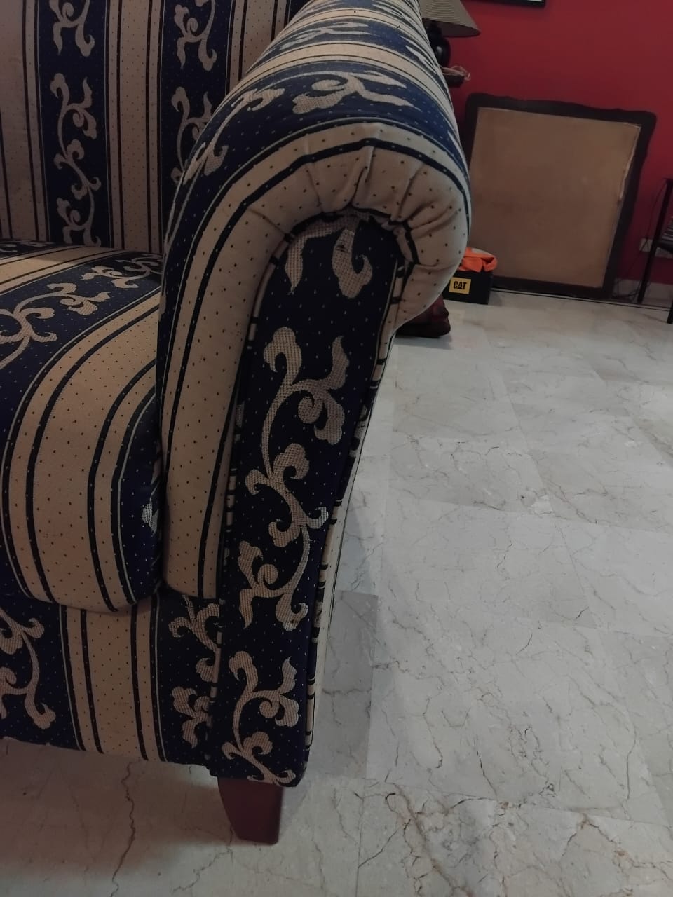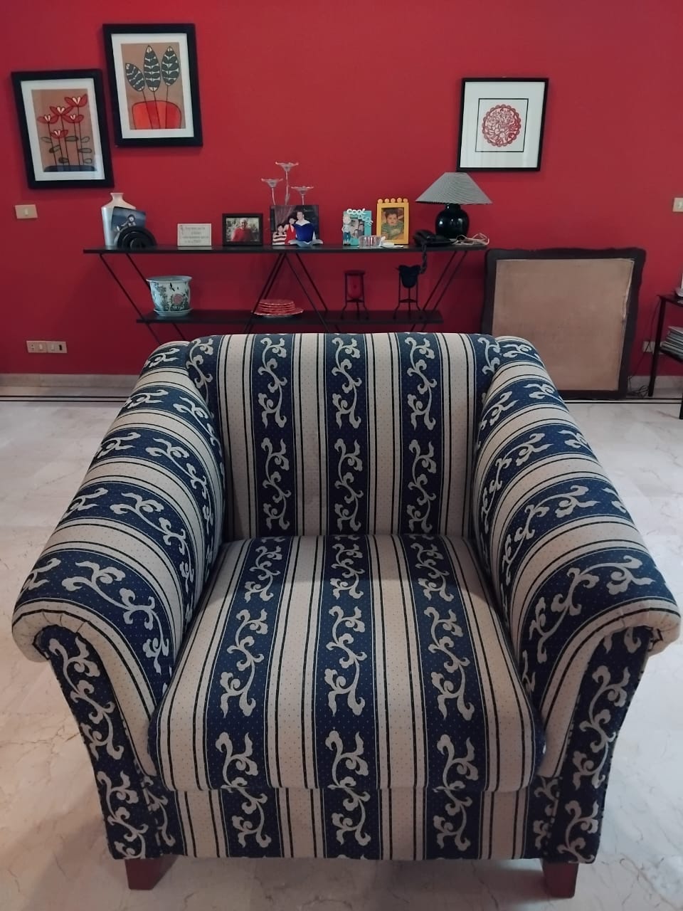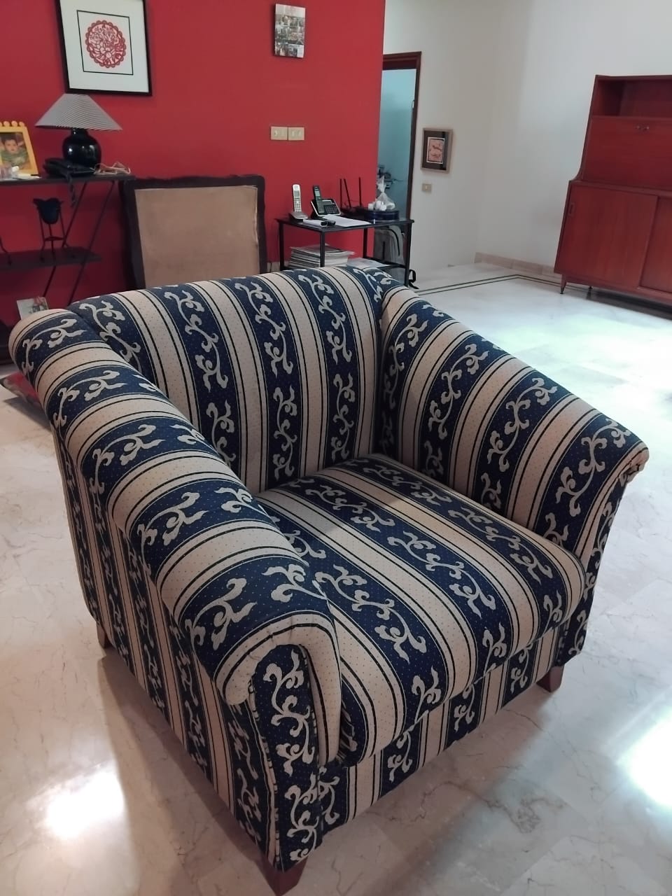 This 4-seater sofa set, comprised of one large 3 seat sofa and a single one seat sofa chair, is ready to enhance your living space. Crafted with a comfortable cotton fabric and supported by solid wooden legs, this set is designed for everyday use.