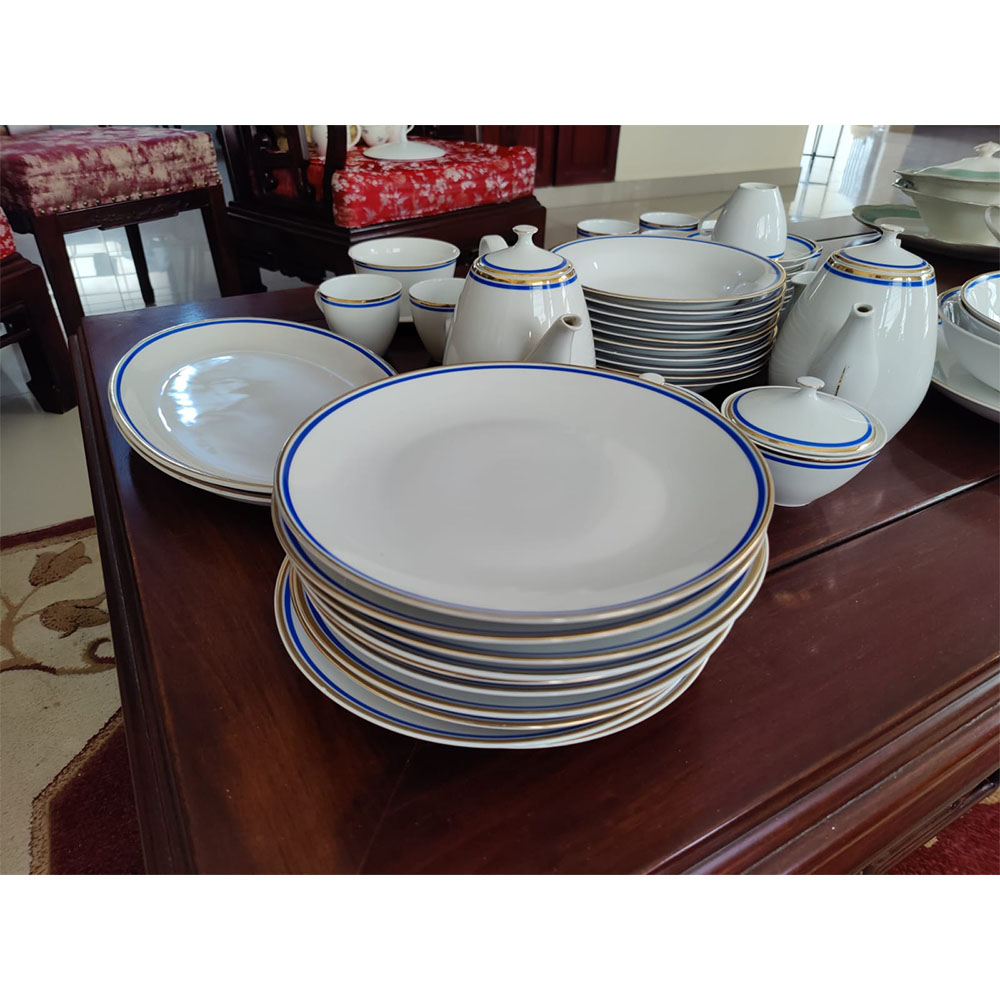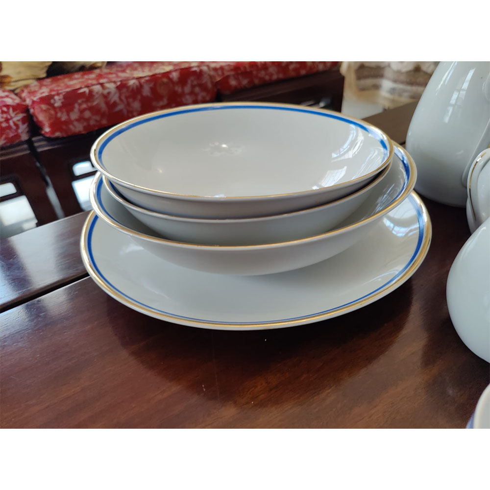 2 rice dishes, 3 serving bowls, and 1 dessert serving plate, 1 sauce bowl,