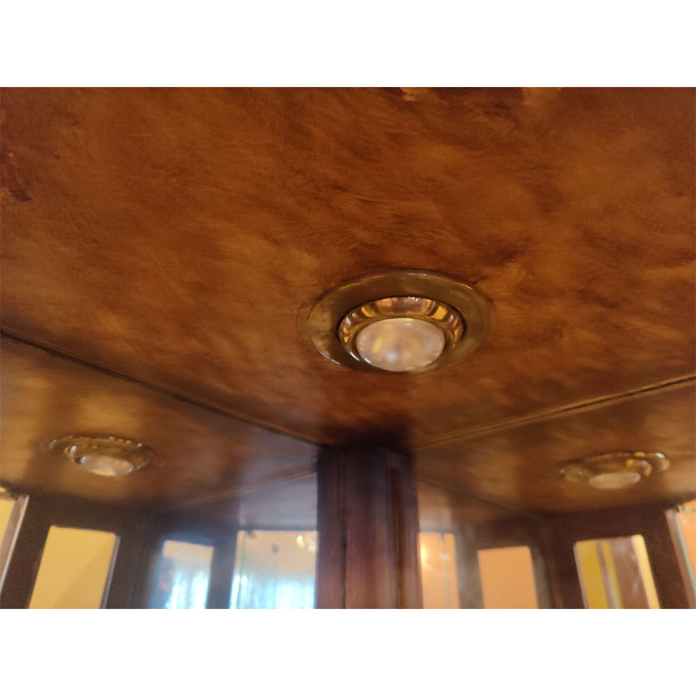 This display cabinet, features a hexagonal shape with glass doors and shelves. The cabinet’s design allows it to fit perfectly into a corner, making it ideal for smaller spaces. The glass doors provide a clear view of the interior, allowing you to showcase your prized possessions. The cabinet’s intricate details and elegant finish make it a stunning addition to any home decor.
