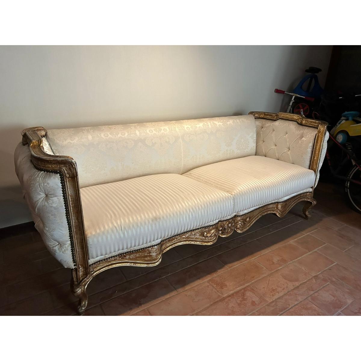 This luxurious French-style sofa reflects refined craftsmanship and regal charm. Constructed from premium rosewood finished in gold and upholstered in richly textured silk fabric in ivory. Making it a perfect statement piece for formal living rooms, lounges, or reception areas.
