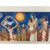A captivating abstract painting depicting human figures by artist Shazly Khan dated 2012. The artwork beautifully blends deep blues, warm tones, and expressive forms to evoke harmony and vitality. Perfect for adding a modern artistic touch to living spaces, offices, or galleries.