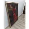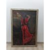 A dramatic and emotive painting depicting a woman in a flowing red ethnic outfit gazing into a stormy horizon by artist Zahid Hasan dated 2004. The rich textures and deep tones capture a powerful sense of solitude and strength. Perfect for adding warmth and character to classic or modern interiors.