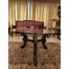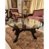 Elegant round coffee table featuring a clear glass top supported by a uniquely carved wooden base with horse-head details. This artistic piece adds sophistication and character to any living room or sitting area. The table is sturdy, well-balanced, and ready to use.