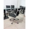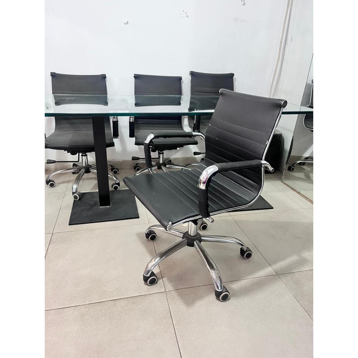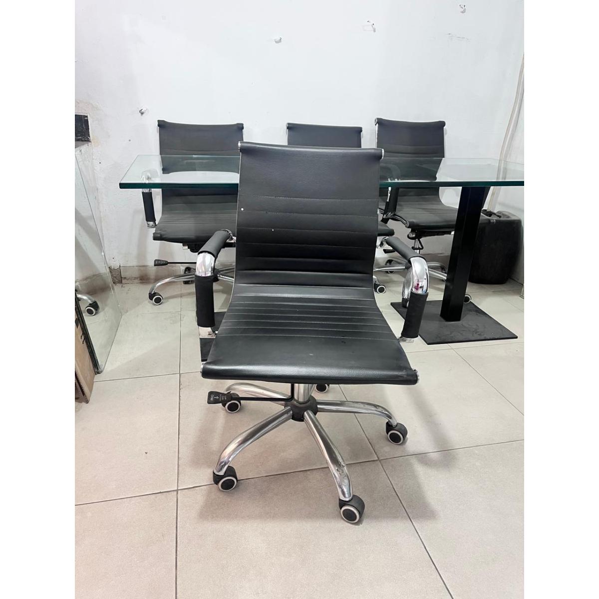 Glass Conference Table with 6 Black Swivel Office Chairs