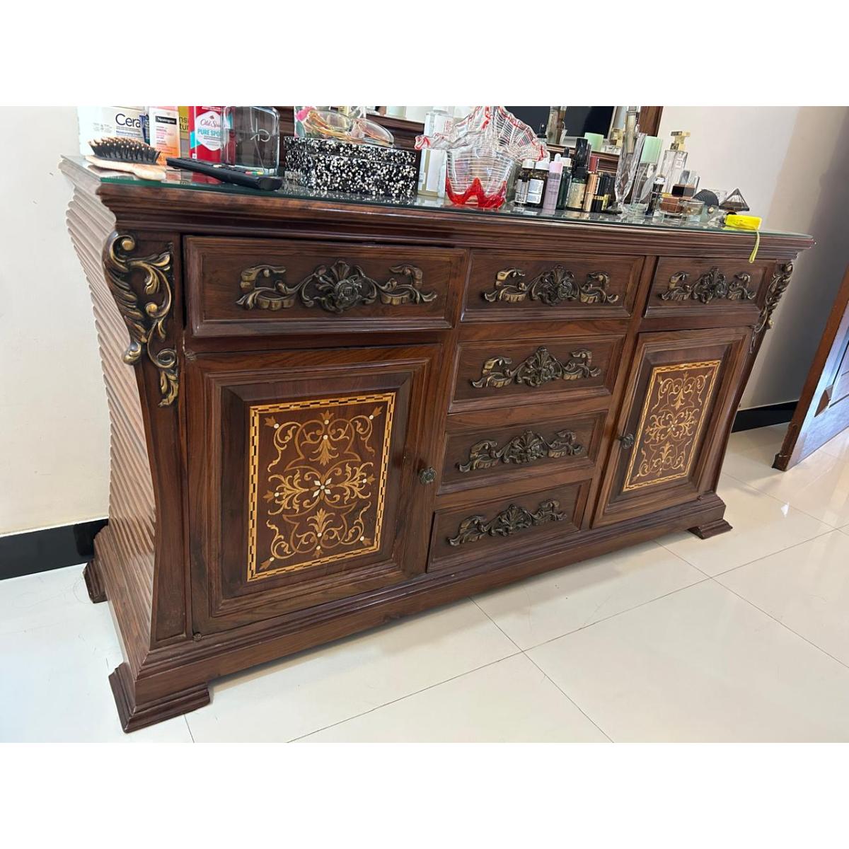 MaterialSolid Sheesham wood Mother of Pearl inlay Glass tops on side tables Belgium glass dresser mirror