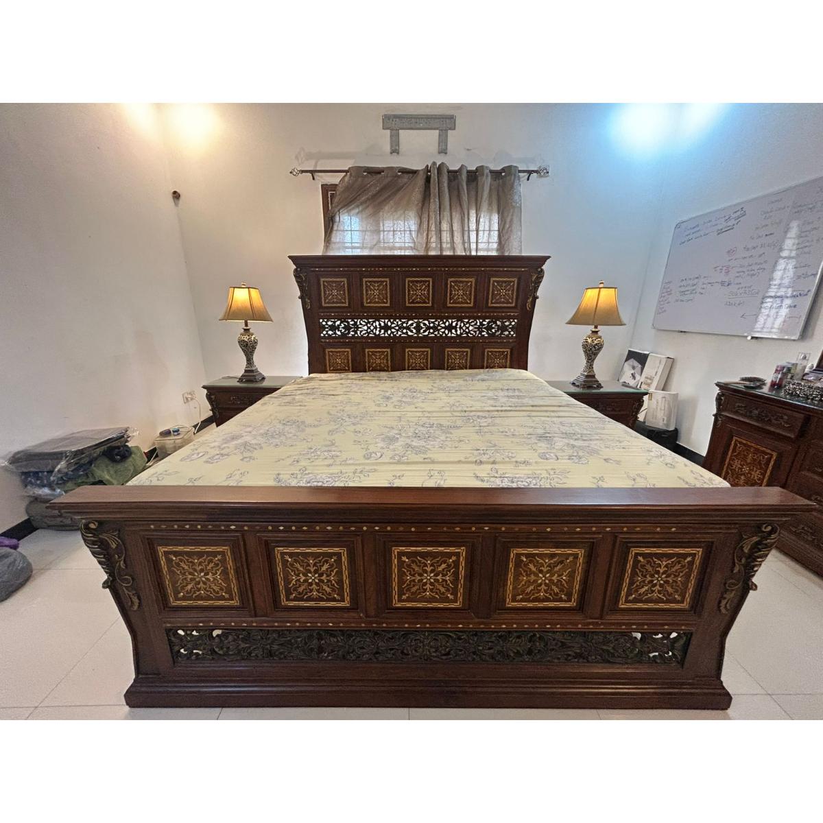 Hand-Carved King Bed Set with Mother of Pearl Inlay