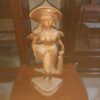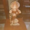 Beautiful handmade wooden sculpture of a farm lady wearing a conical hat, holding a produce basket and water vessel. Finely carved drapery and facial features, with a stylized base for stable display. Warm natural patina; a striking accent for consoles, cabinets, or entryways.