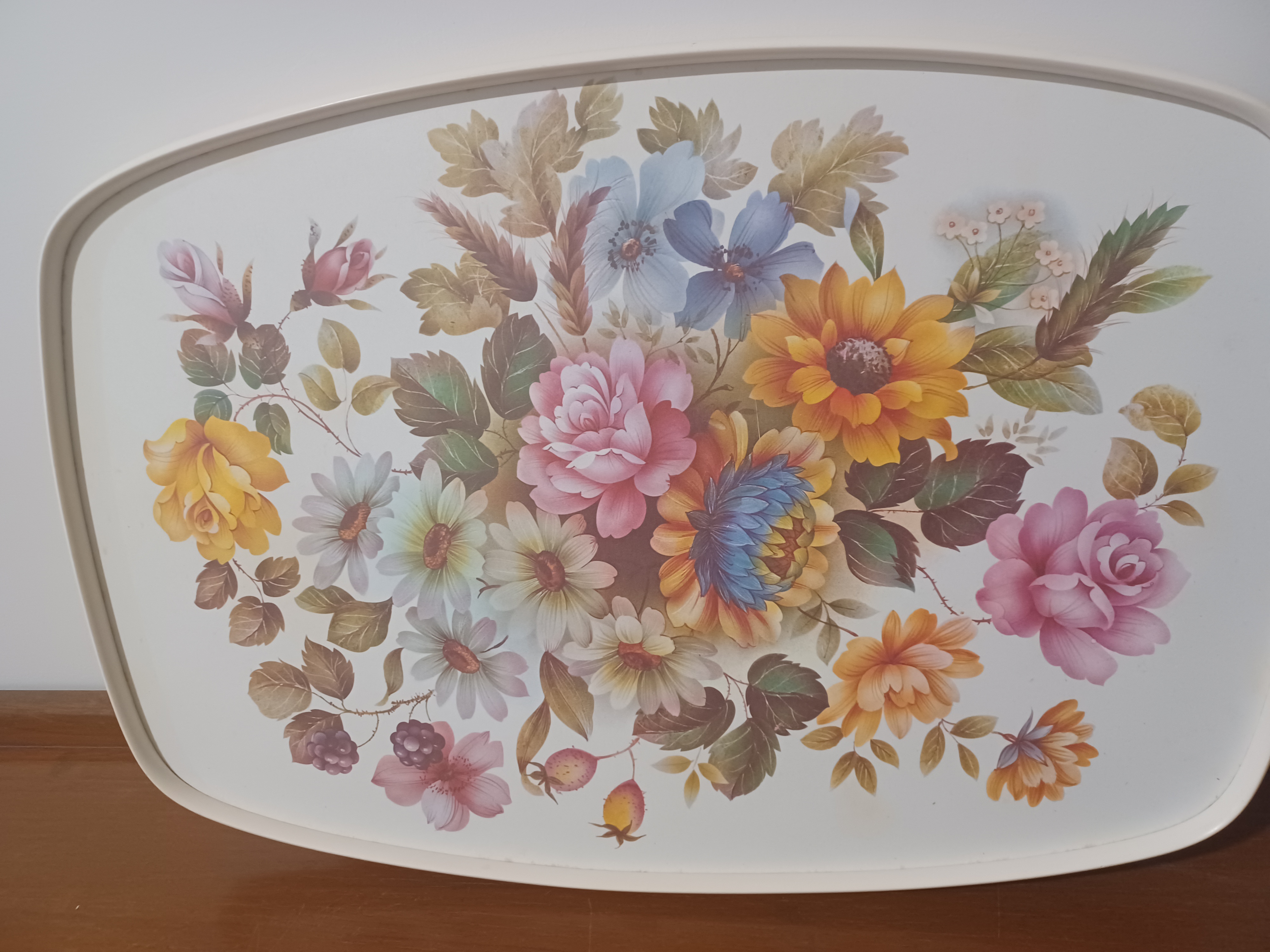 Imported large size floral melamine covered wood tray originally from UK. Perfect for daily use or to serve guests.