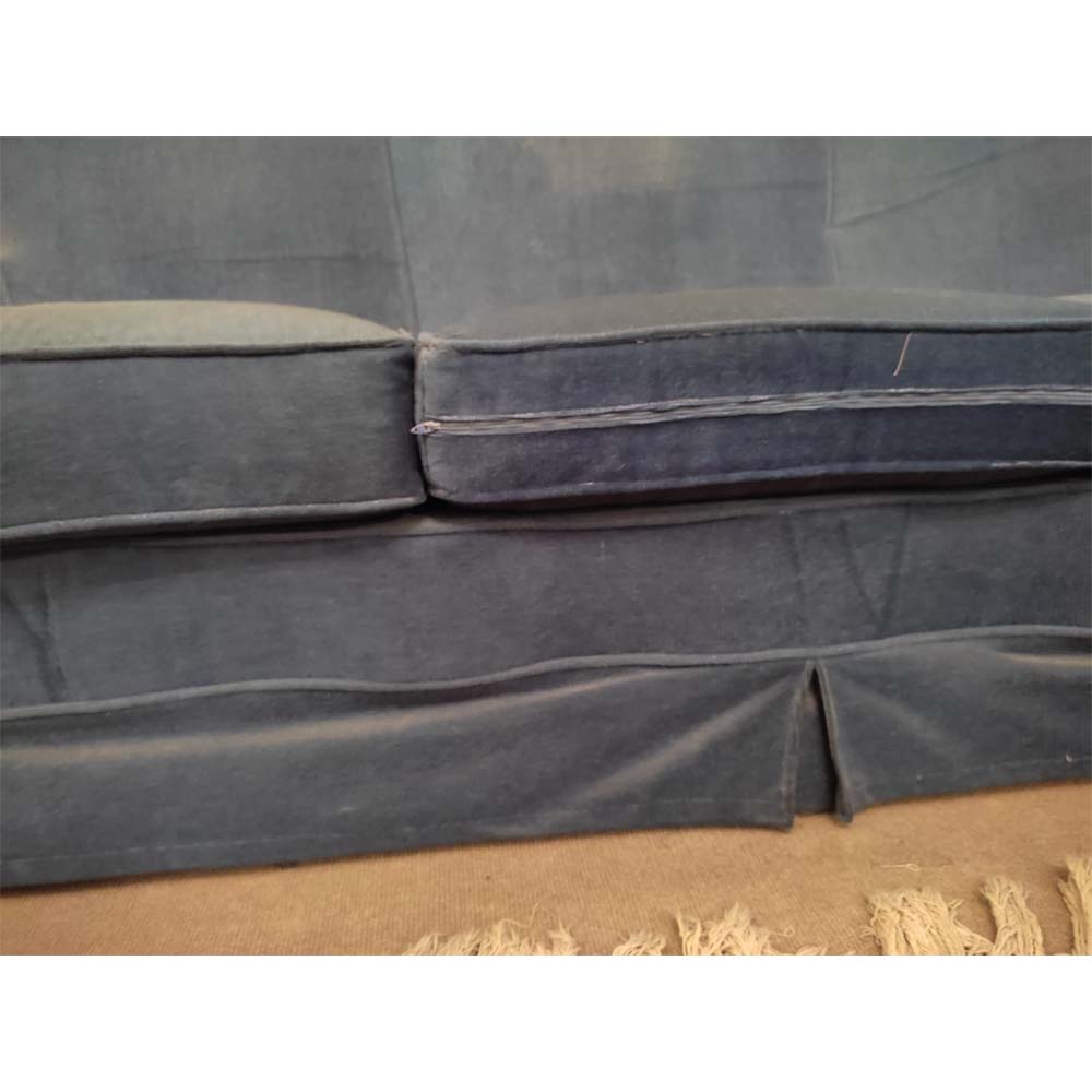 Seven seater Victorian style sofa set originally imported from Vienna Austria. Classic design 3 seater sofa and 4 single seater chiars with wing backs, upholstered in imported suede fabric.