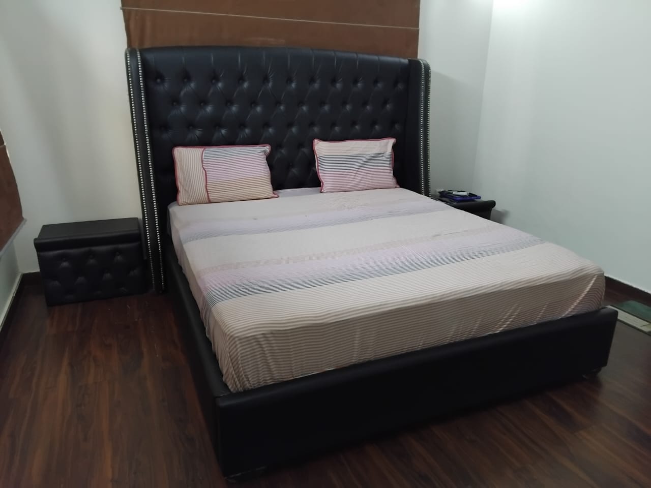 King Bed in Leatherette with Matching Side Tables