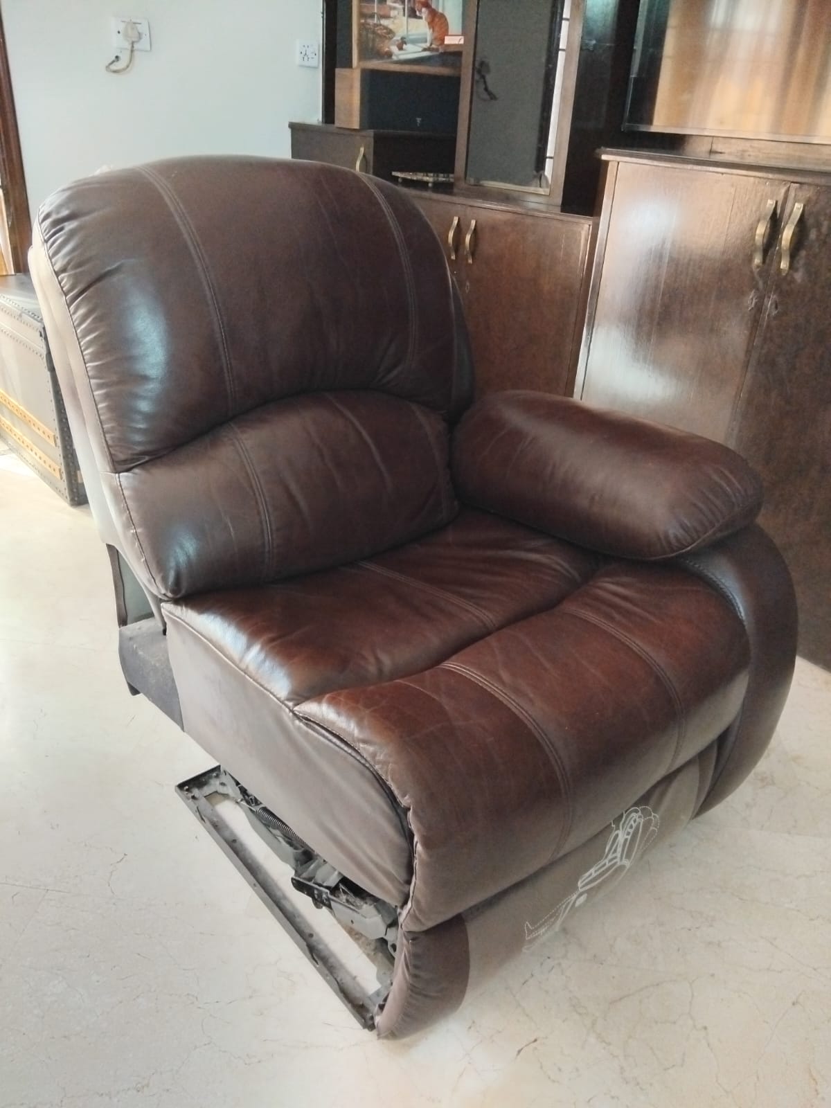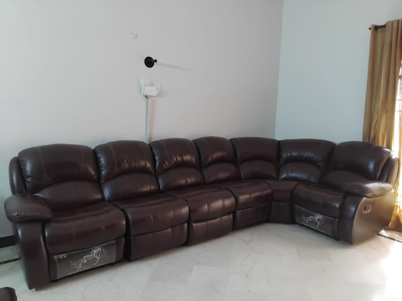 Plush leather L- Shaped recliner sofa is ideal for a family theatre at home or a TV lounge with its refined look and a comfortable seating experience.