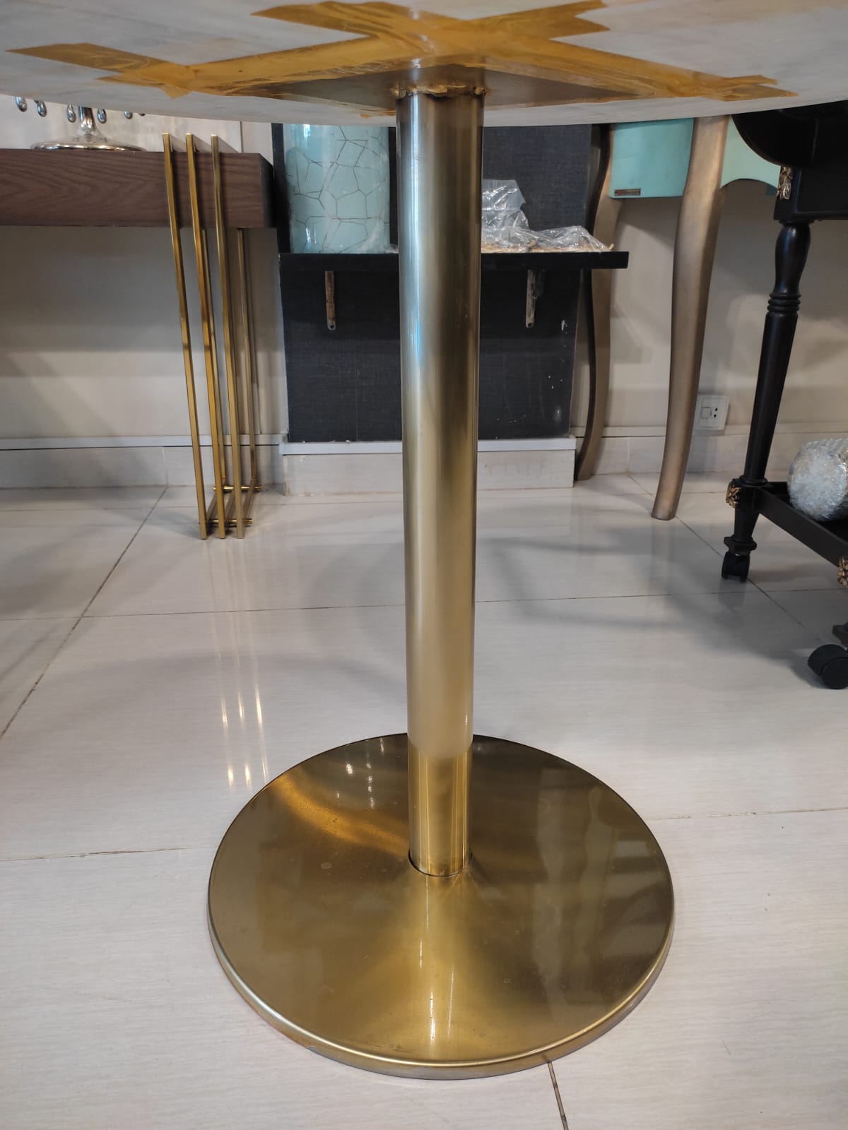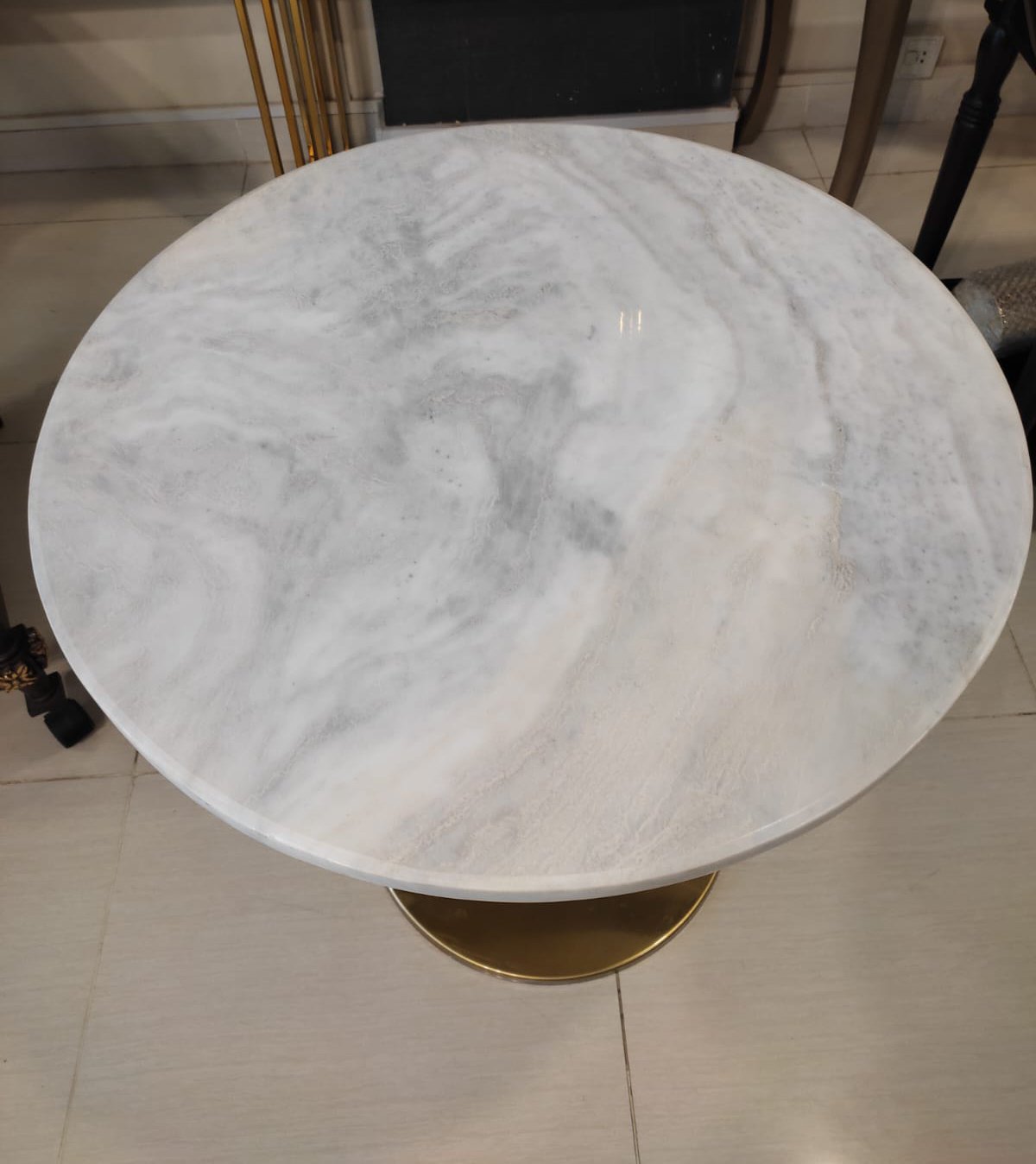 Brand new accent table showcases a modern design with a natural veining marble top and sleek metal base, creating a unique and luxurious look.