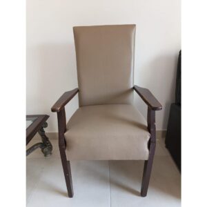 A pair of arm chairs feature classic carved frame and not only provides comfortable seating but also adds a touch of timeless elegance and craftsmanship to the space.