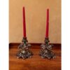 Pair of intricately carved heavy metal candle stands featuring rich detailing and elegant curves. Their antique finish and solid craftsmanship make them a perfect decorative accent for dining tables, mantels, or classic interiors. Ideal for collectors or as a sophisticated gift.