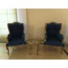 Pair of Royal Blue Velvet Wingback Chairs with Round Side Table