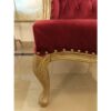 Luxurious set of two deep red velvet wingback chairs with an antique-gold Sheesham wood frame and matching round glass-top side table. The elegant tufted back design and royal finish make it a perfect addition to any living room or lounge area.