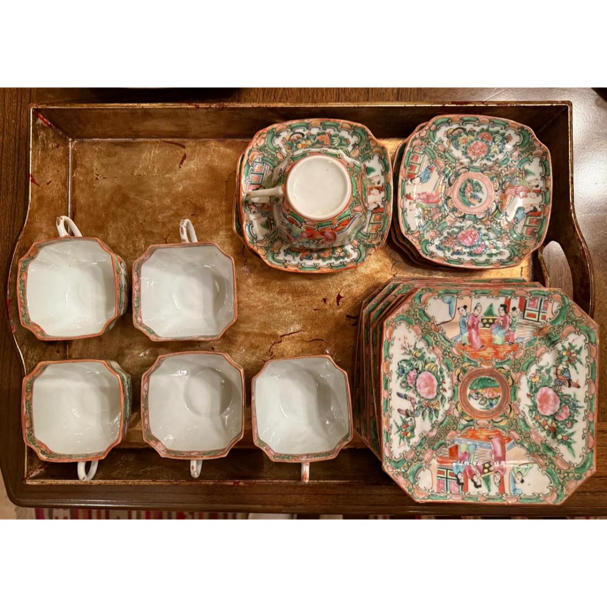 Rare Antique Chinese Rose Medallion Tea Set for 7