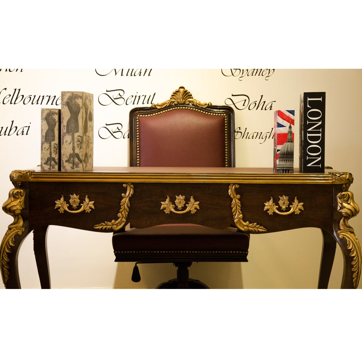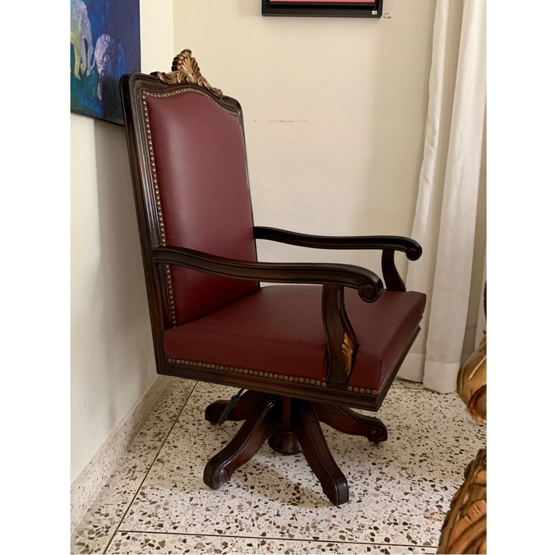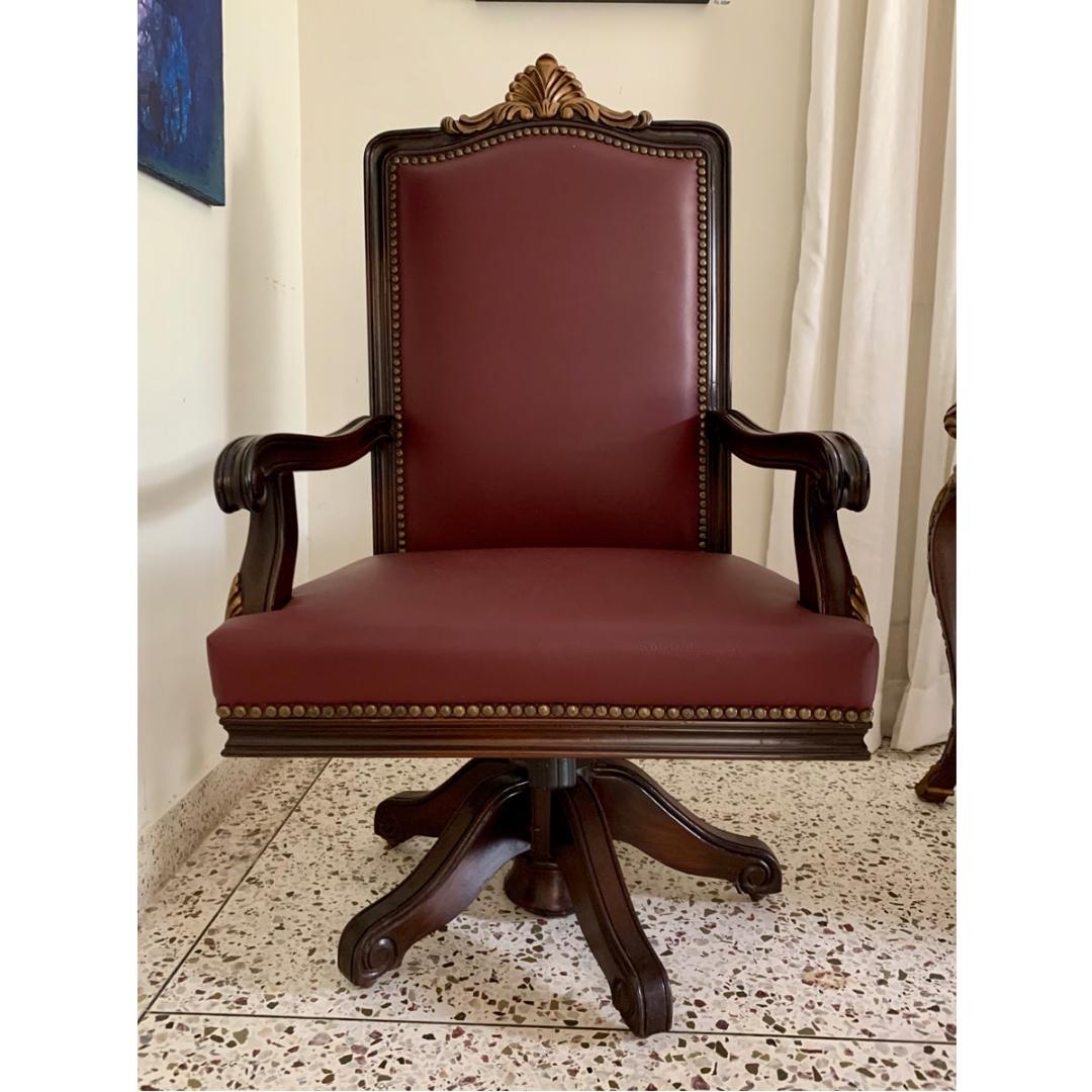 Carved solid wood revolving chair in vintage design in leatherette upholstery with adjustable height and a comfortable back.