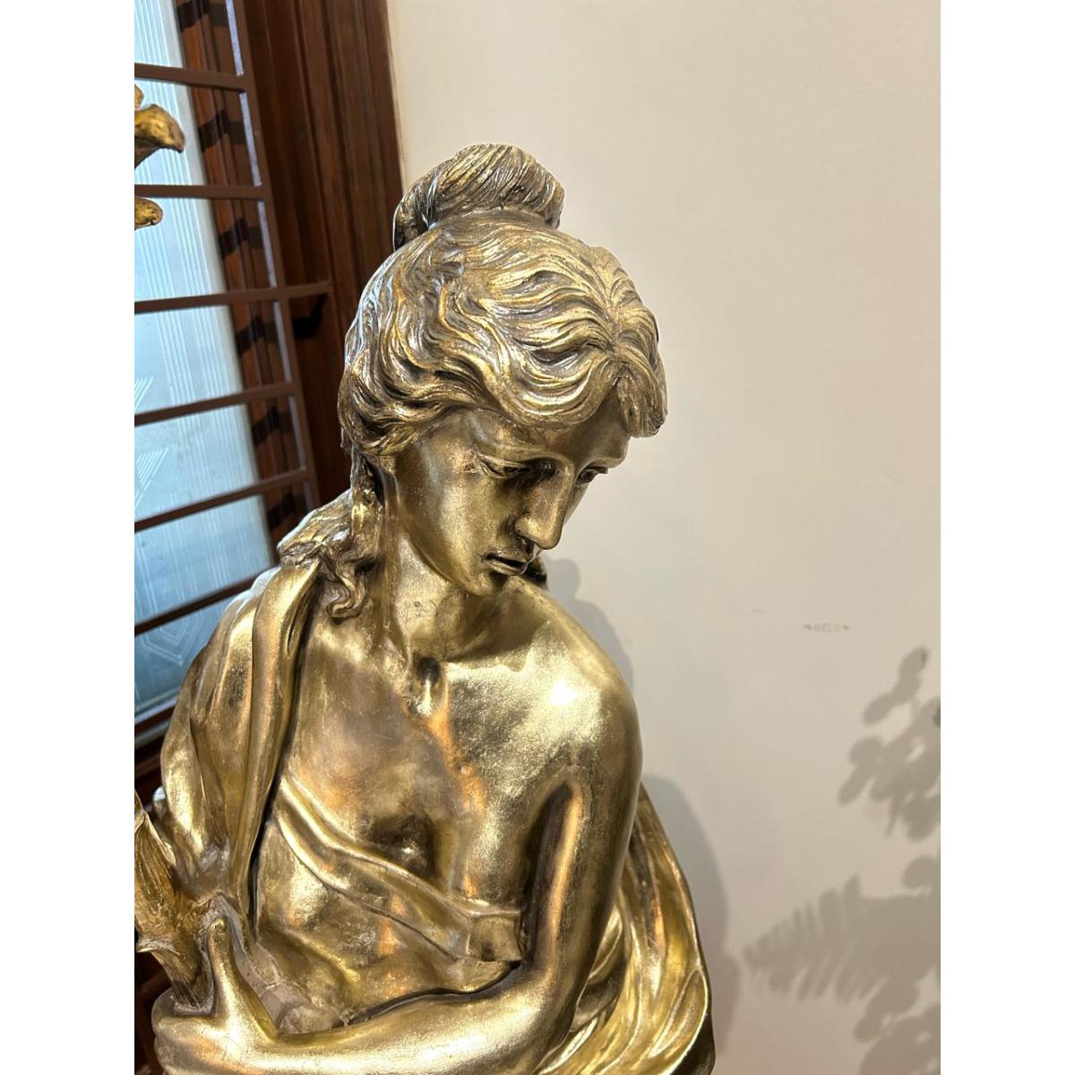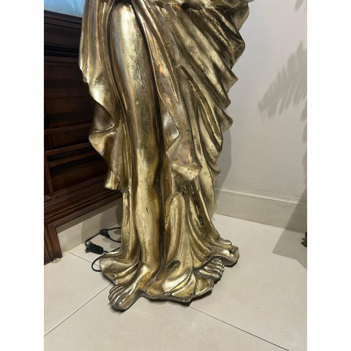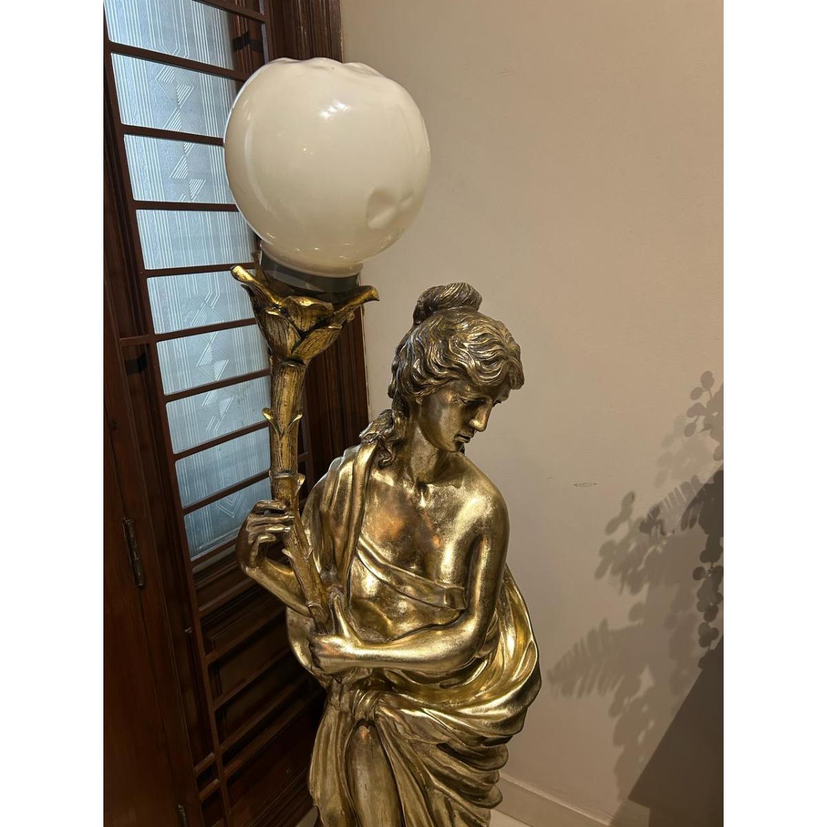 Add a touch of classical grandeur to your space with this Roman lady floor lamp. Expertly sculpted, this statement piece features a regal female figure in flowing drapery, holding a torch-style lamp with a frosted globe light.