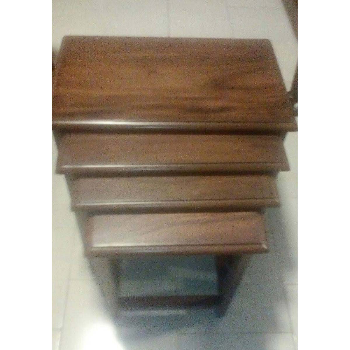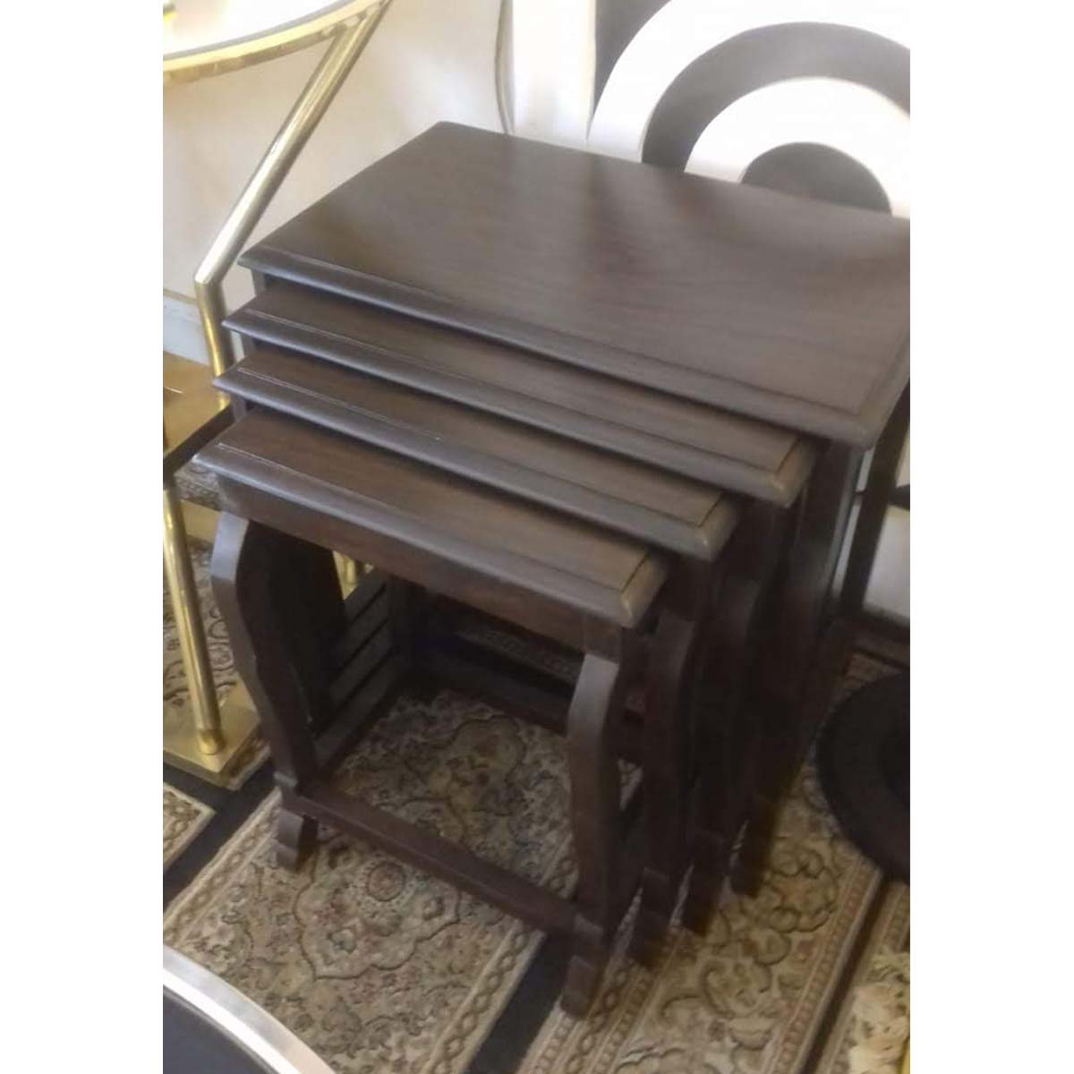 Set of 4 nest of tables made in solid Sheesham wood. These neatly slide in to one another to save space and are perfect to serve guests tea, etc.