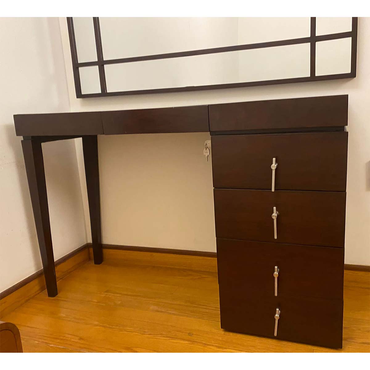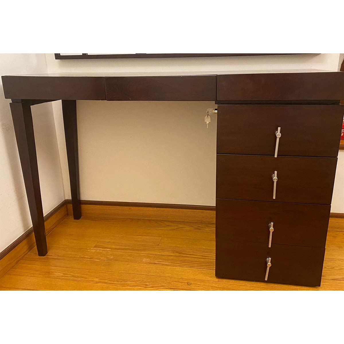 Sleek console table with matching wall hanging mirror made in Sheesham wood. Can also be used as a desk or a dressing table, comes with 7 slim drawers.