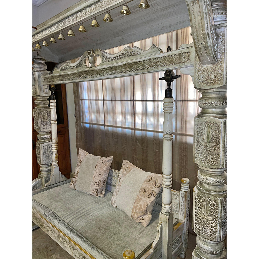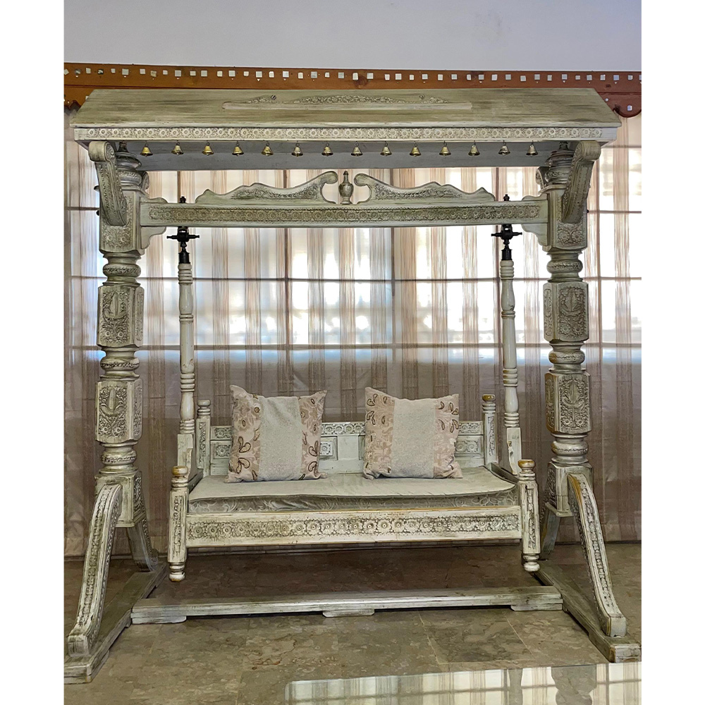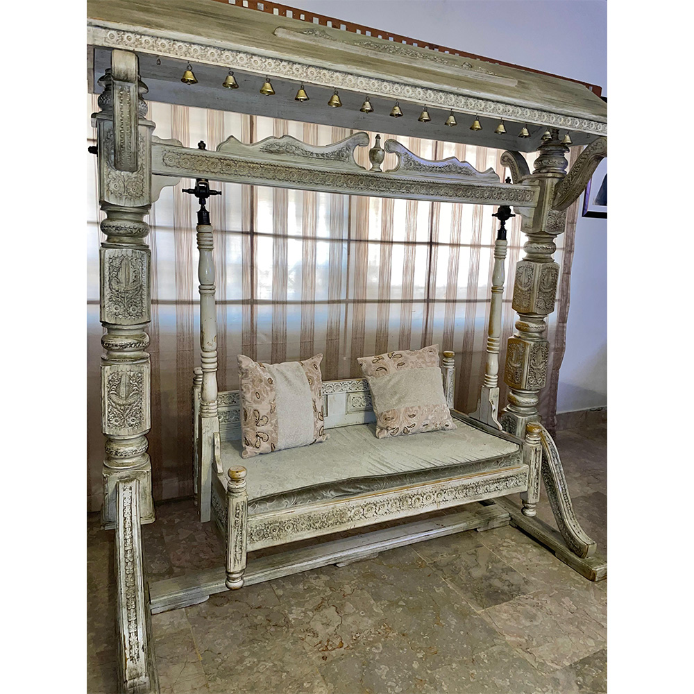 Custom made swing/ jhoola showcasing South Asian craftsmanship in solid sheesham with distressed finish for a vintage look.