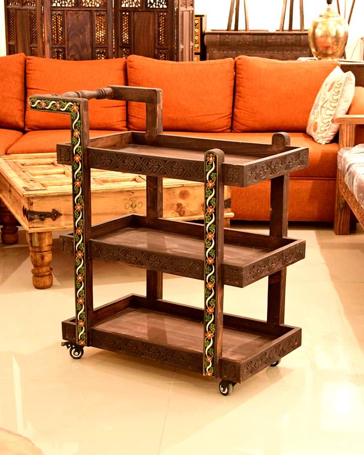 Swati Carved Tea Trolley