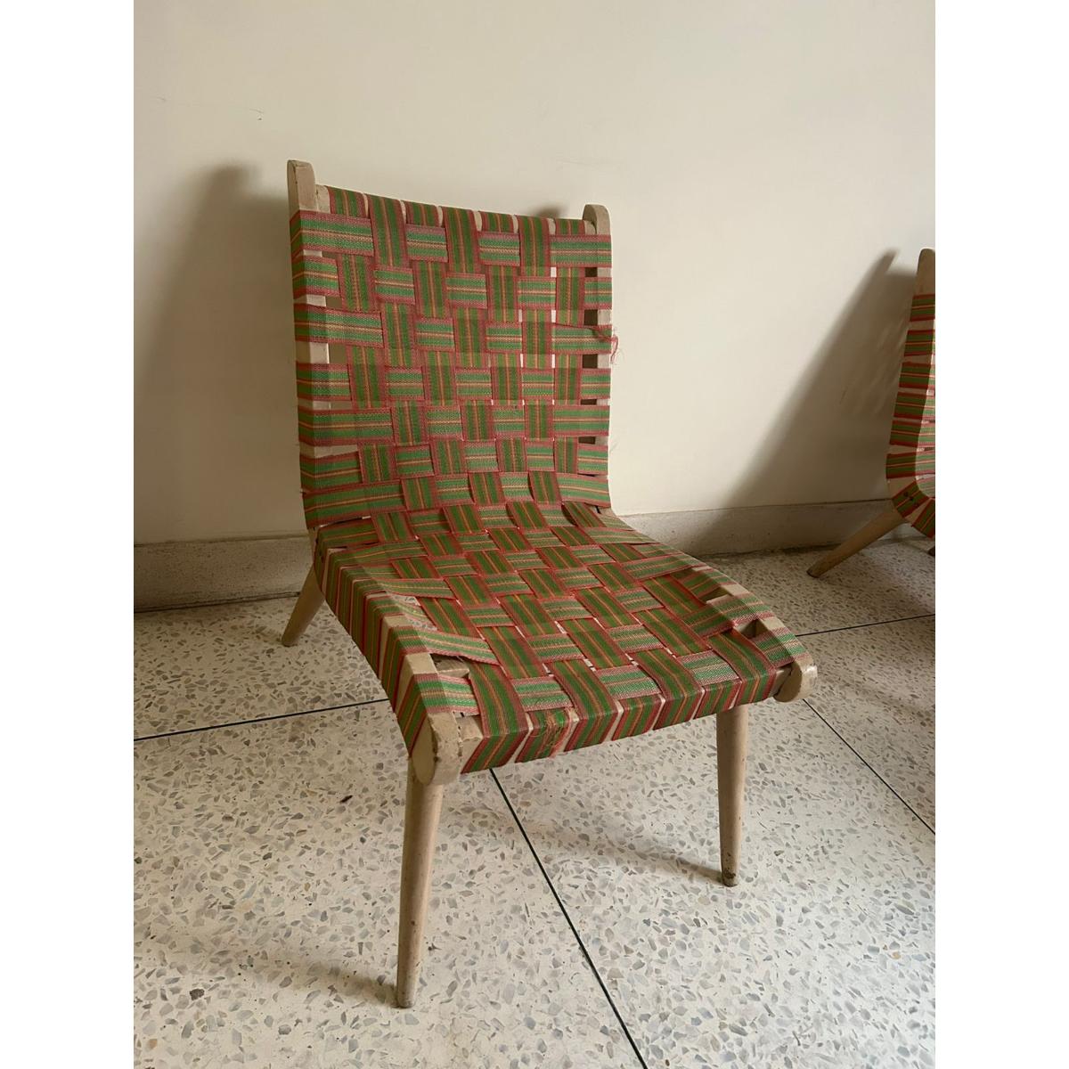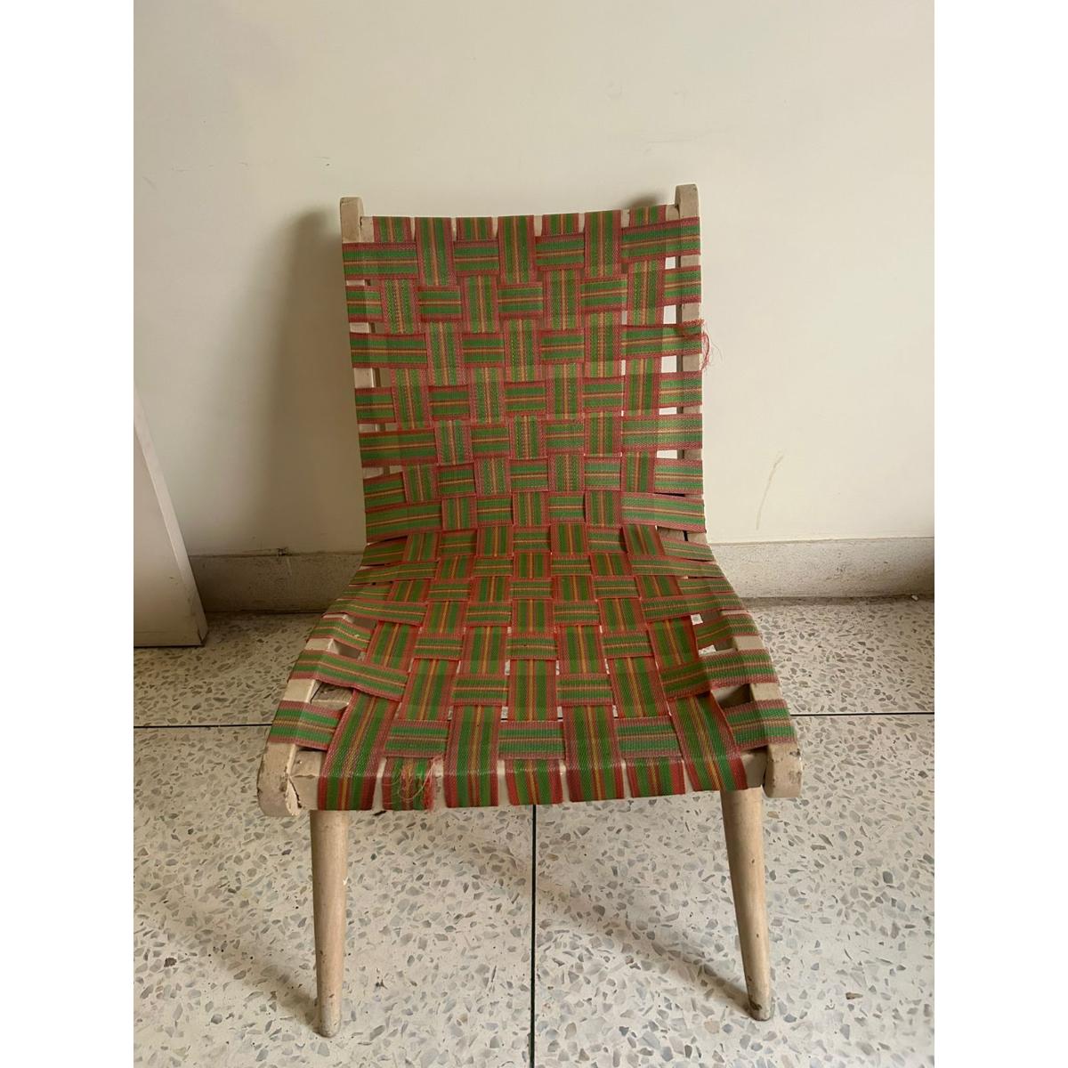 A nostalgic nod to classic South Asian craftsmanship, these 3 chairs feature a solid wood frame and handwoven multicolor webbing, ideal for relaxed indoor or outdoor use. Lightweight yet sturdy, they blend old-world charm with everyday functionality.