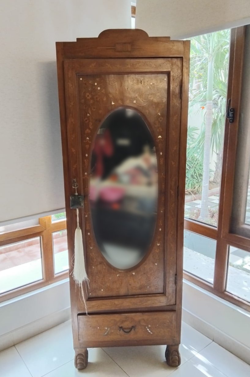 Vintage Burma Teak Wardrobe with Mirror
