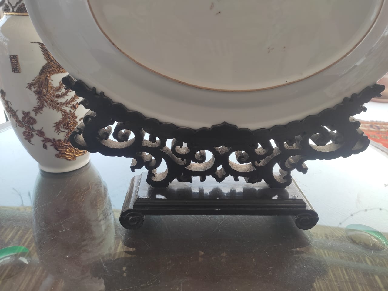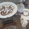 Rare vintage decorative plate & vase set beautifully coordinated duo features intricate dragon motifs, hand-painted with gold finish on ceramic blending both classic artistry and modern design to enhance your home décor.
