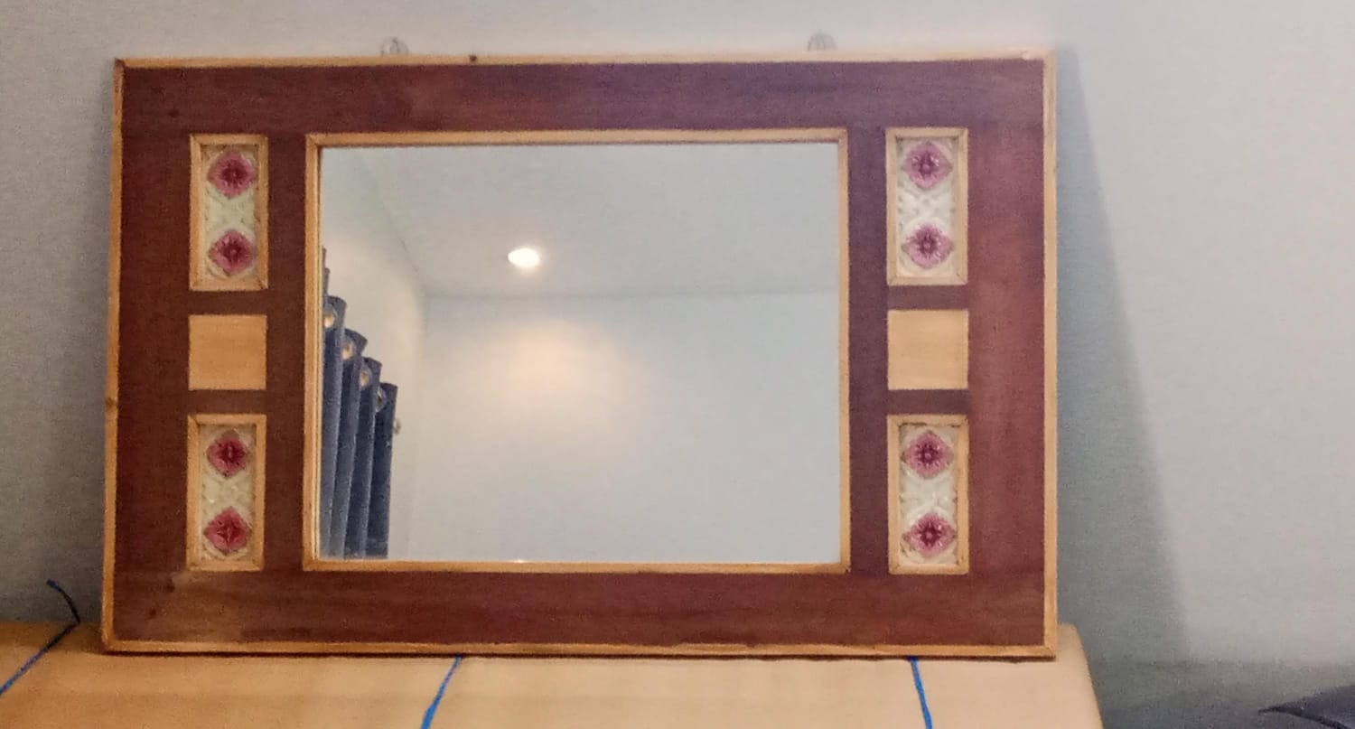 | Material | Teak & variable wood, glass mirror & vintage tiles |