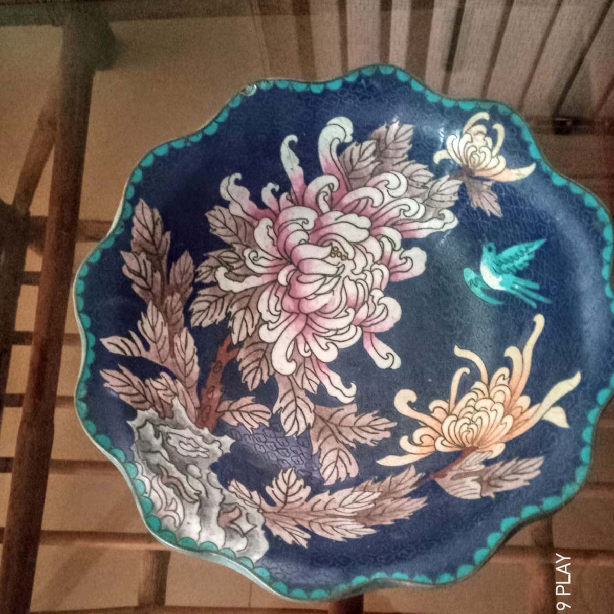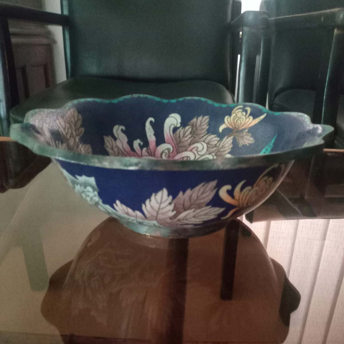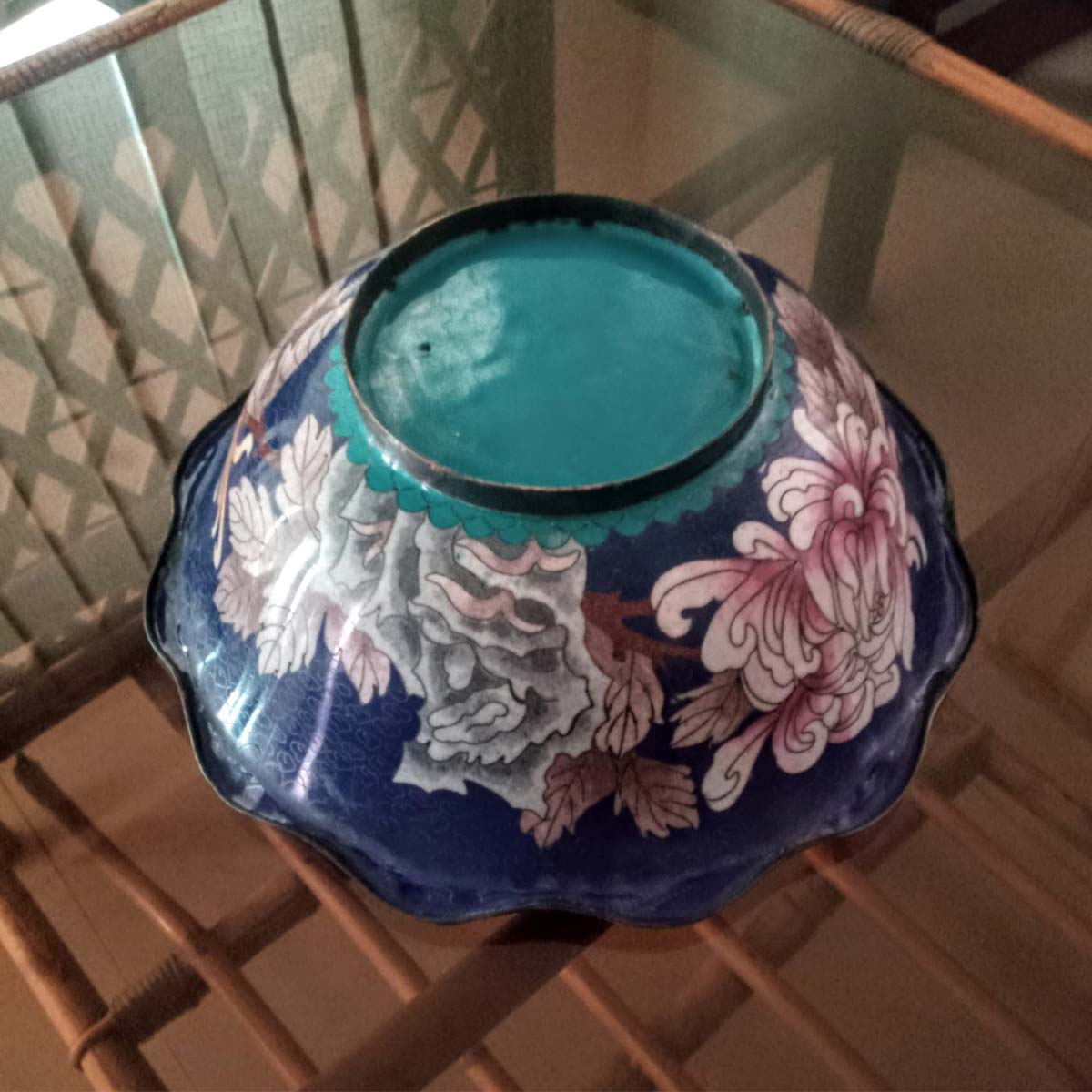 Vintage Chinese copper decorative bowl with enamel (minakari) hand work.