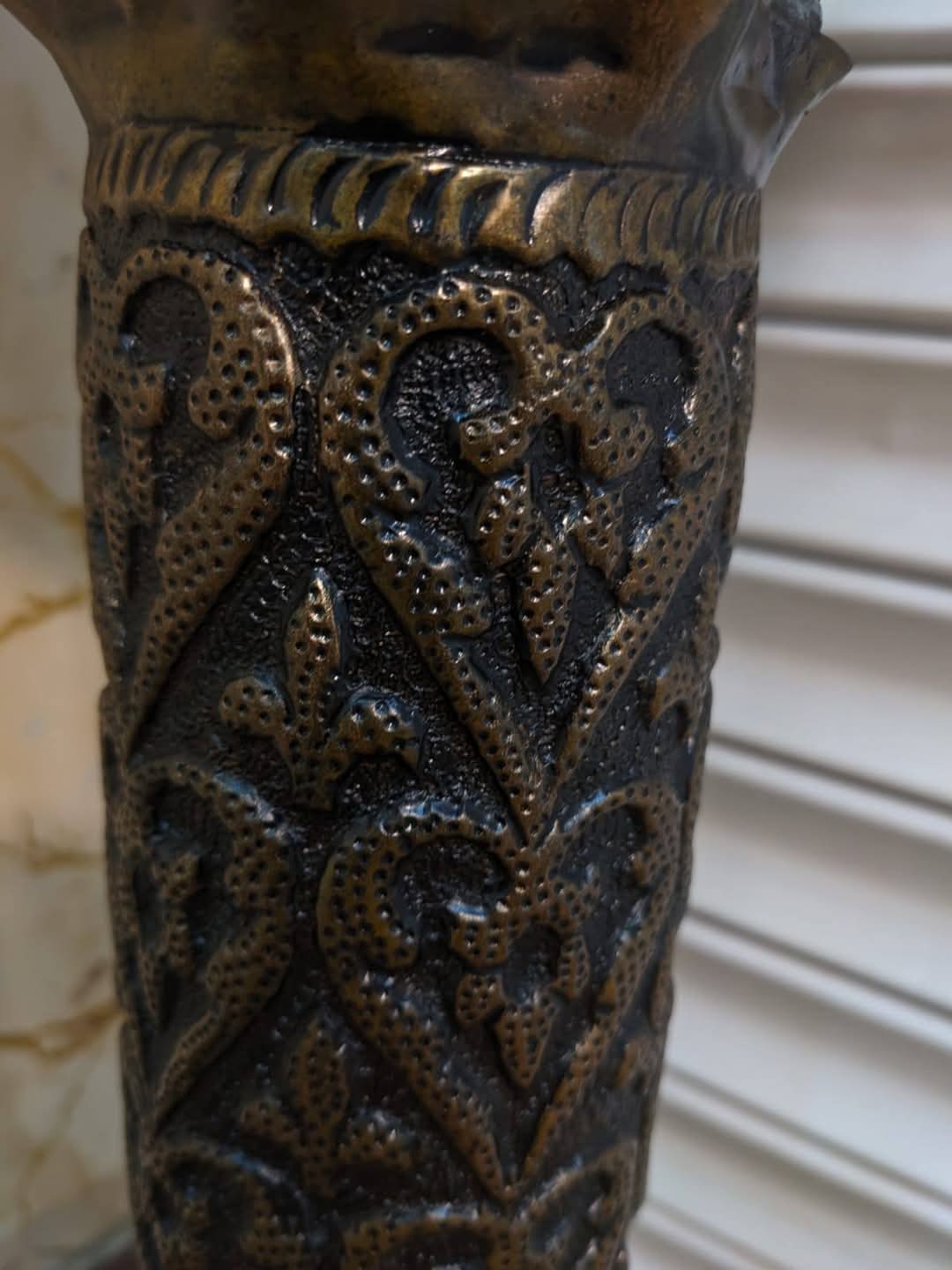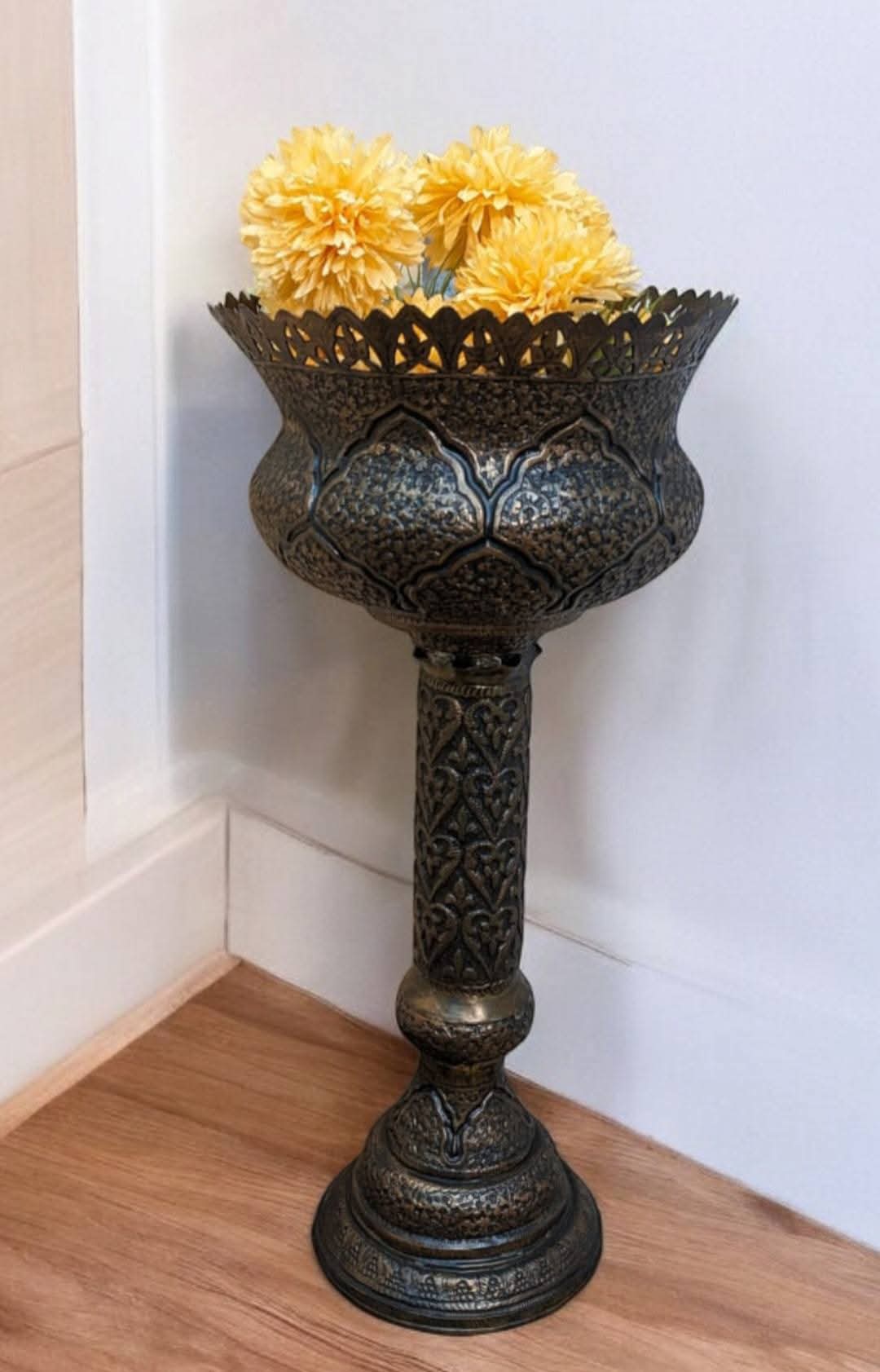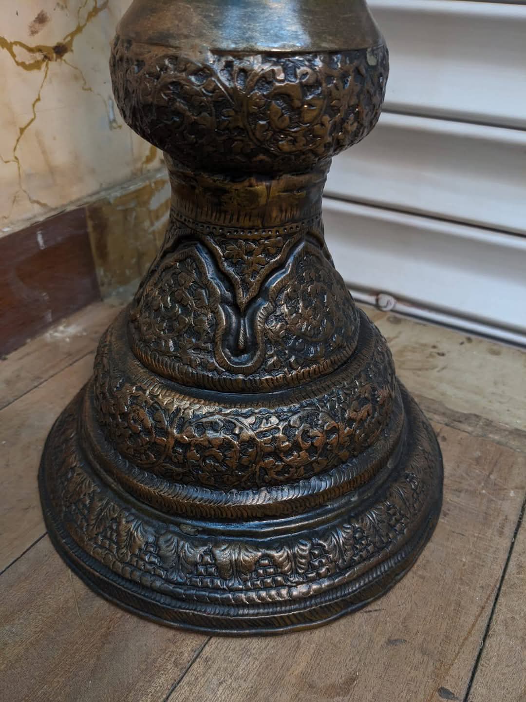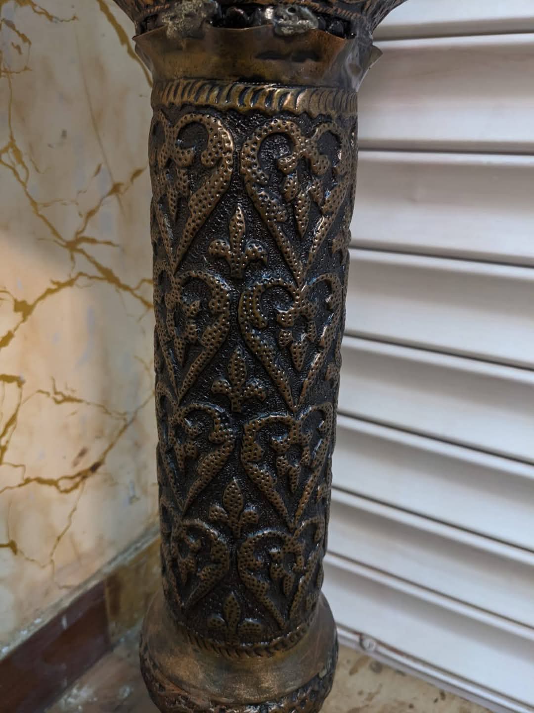 Vintage Copper Stand Vase With Ornate Design