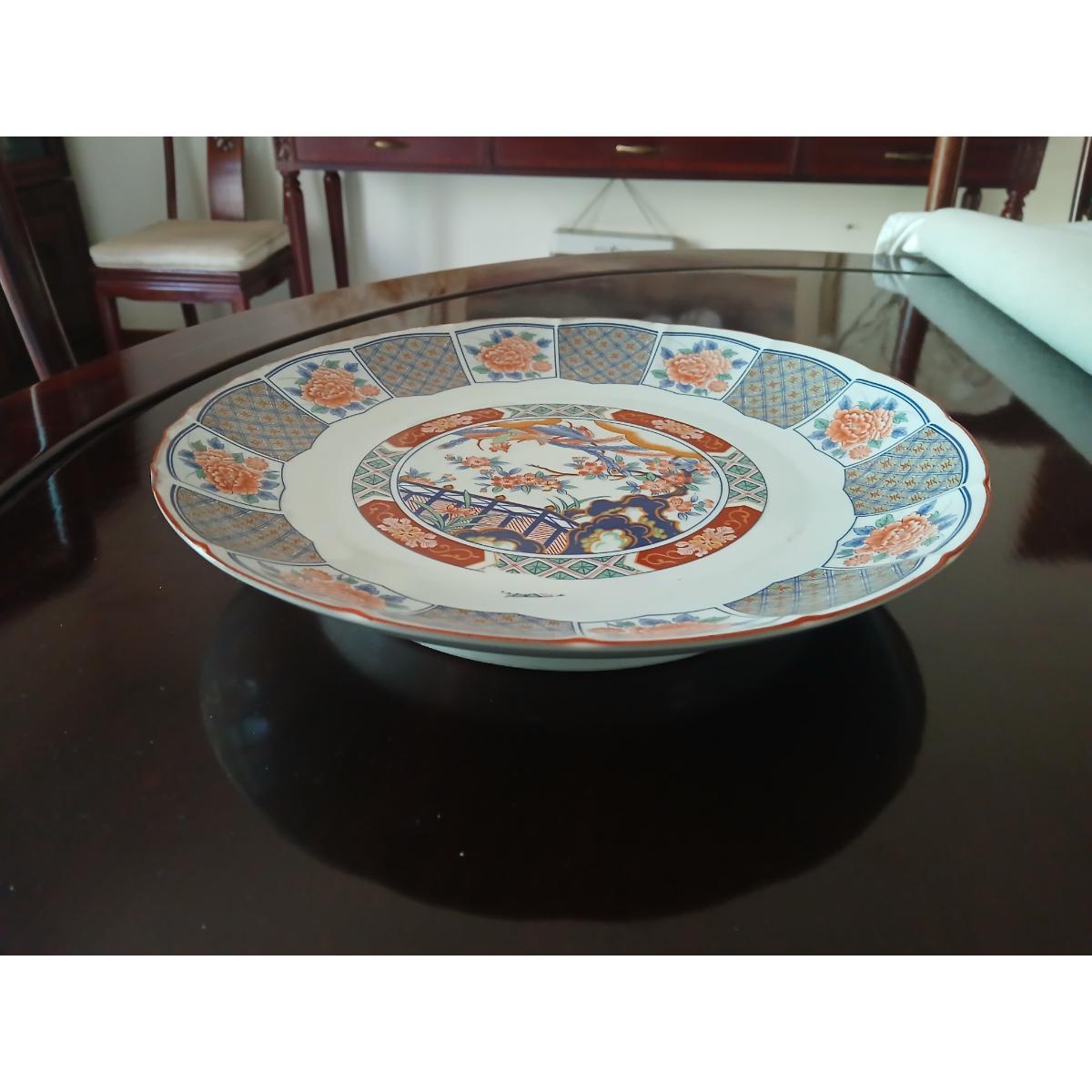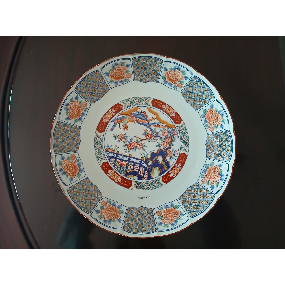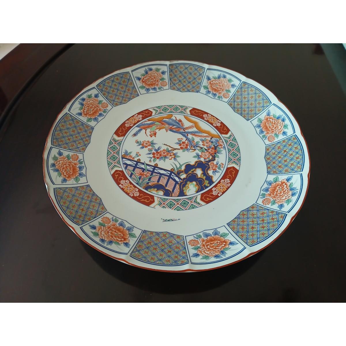 Vintage Japanese Imari porcelain serving platter that can also be used to decorative wall plate.