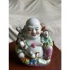 Vintage hand-painted porcelain statue depicting the Laughing Buddha surrounded by five joyful children, symbolizing happiness, abundance, and good fortune. This vintage collectible showcases vibrant colors and intricate detailing, perfect for collectors of decorative piece.